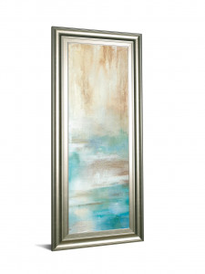 This beautifully designed piece is elegantly framed using a 3 inch profile made of a scratch resistant MDF in a color we call "Silver Serenity". It is framed under real glass and it is ready to hang