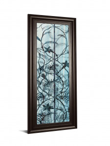 This beautifully designed piece is elegantly framed using a 3 inch profile made of a scratch resistant MDF in a Dark Chocolate color. It is framed under real glass and it is ready to hang with all th