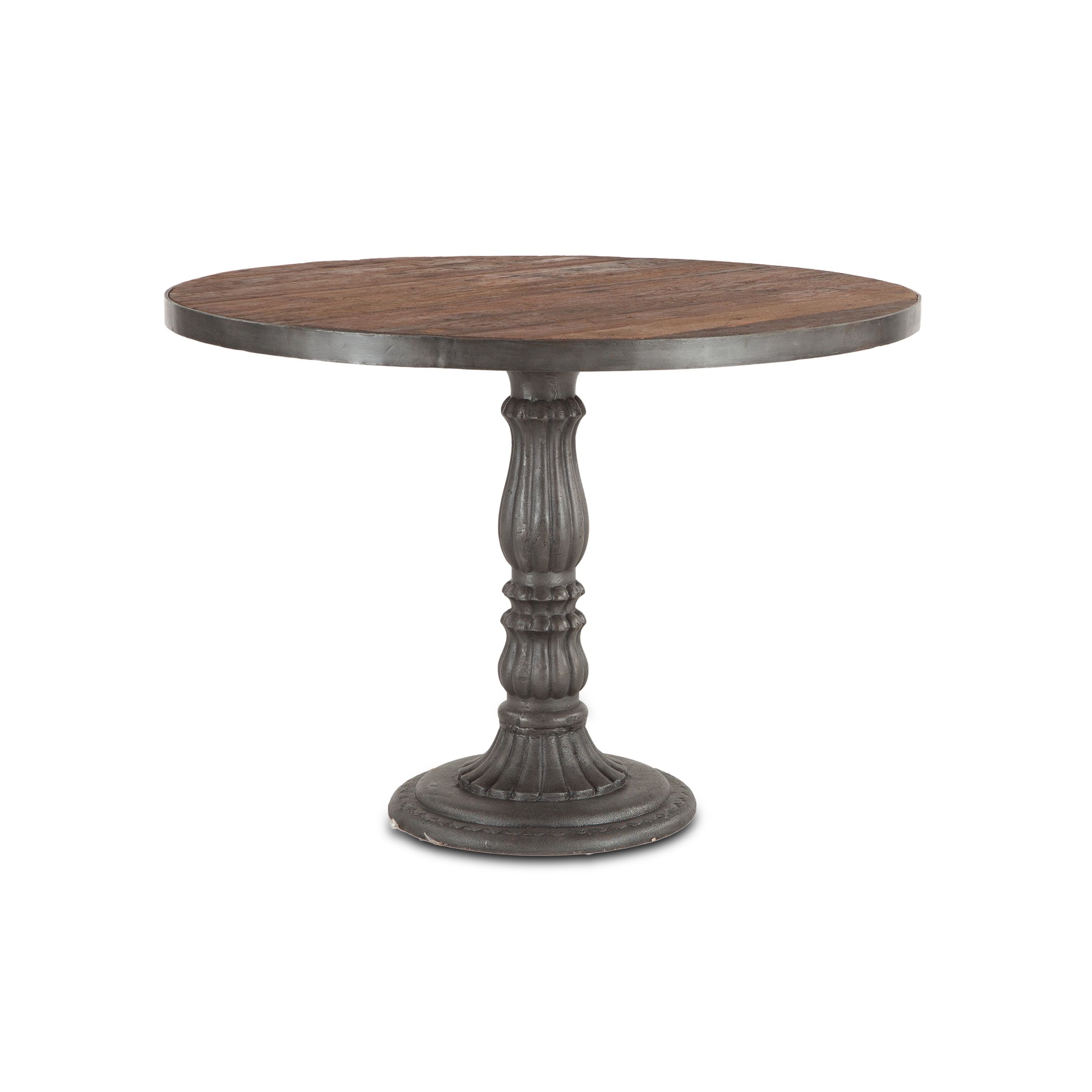 Industrial Teak 42-Inch Round Reclaimed Teak Wood Dining Table with Pedestal Base