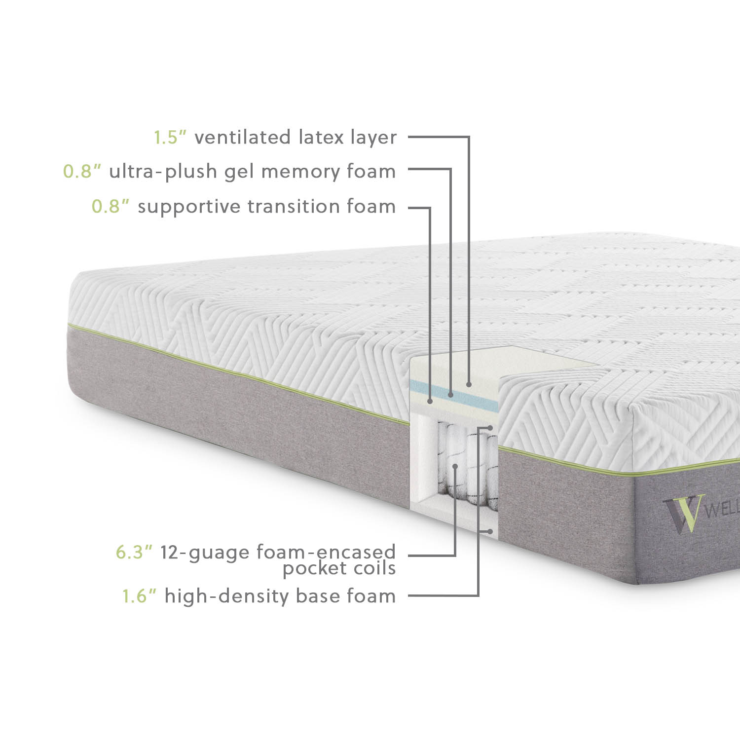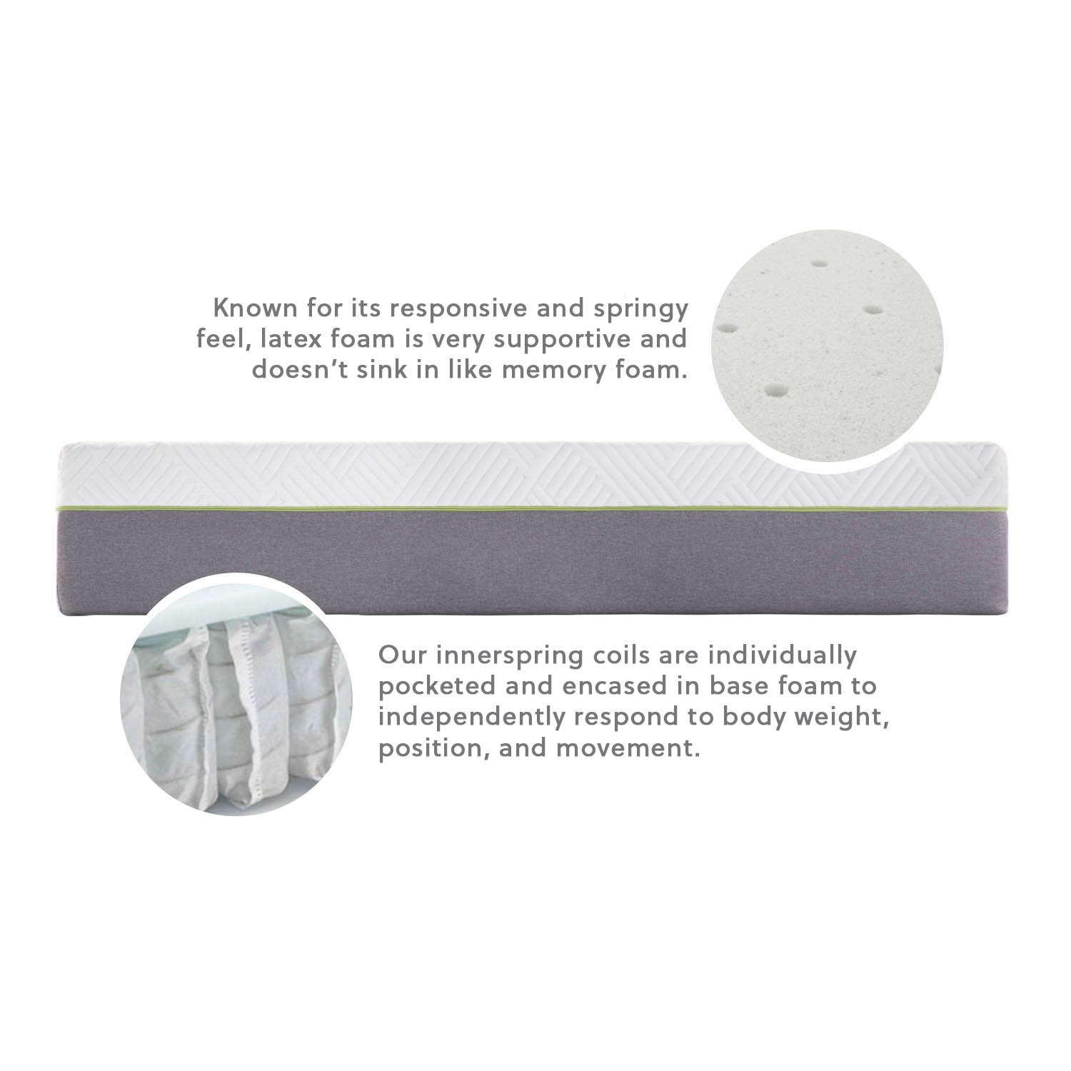 The premium 11 Inch Latex Innerspring Hybrid mattress features six layers of high-end latex, gel memory foam, support foam, and pocketed coils. Ultimately designed for customers who want conforming support, but don’t want that sink-in experience with memory foam—latex offers a unique sleep experience that customers love. Rated a medium-firm feel, it is highly recommended for back and stomach sleepers. The popular 11-inch profile makes it easy for your customers to find well-fitting sheets. Perfectly suited for adjustable bed bases, be sure to display this mattress atop your best-selling bed base model. Consider pairing it with our 11 Inch Gel Memory Foam Hybrid Mattress for the ultimate mix and match opportunity. And our quality and service is guaranteed with a 10-year warranty.