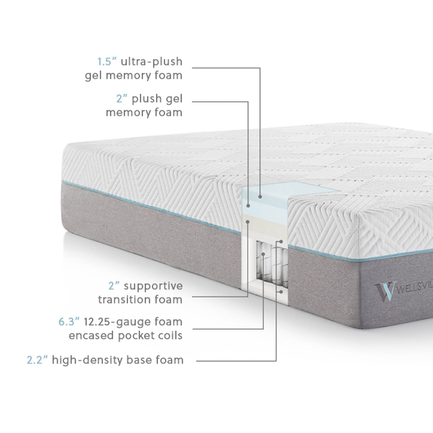Blending the best of advanced memory foam and traditional innerspring comfort creates a new category of comfort. This hybrid bed features a thick comfort layer of ventilated, gel-infused memory foam at the surface and a superior pocket-coil unit for excellent pressure relief and support. At the surface, three layers of foam create the conforming comfort of memory foam with design that enhances temperature-control and breathability. At its base, 12-gauge pocket coils offer the bounce and support of a traditional spring mattress. Mattress comes with a 10-year non-prorated warranty.