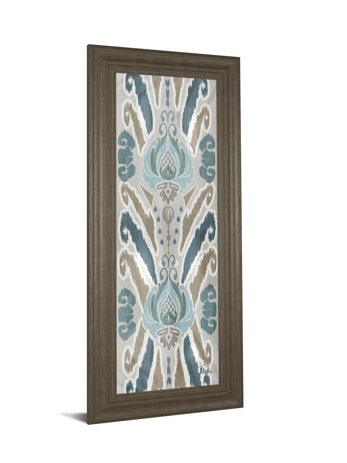 This beautifully designed piece is elegantly framed using a 3 inch profile made of a scratch resistant MDF coated in a color we call "Tranquil Ash". It is framed under real glass and it is ready to h