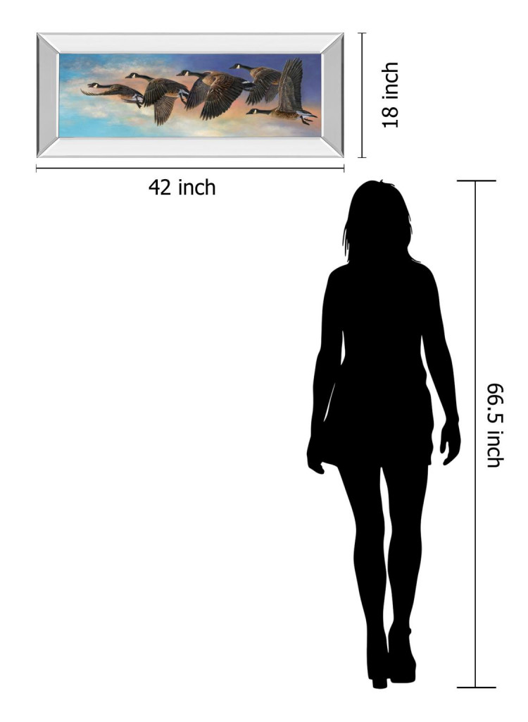 This beautifully designed piece is elegantly framed in a mirrored frame that illuminates the subject. It is framed under real glass and it is ready to hang with all the hardware pre-attached.