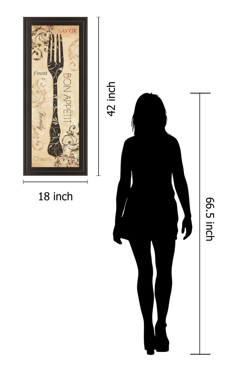 This beautifully designed piece is 18 in. x 42 in. in size and elegantly framed using a 3 inch profile made of a scratch resistant MDF framed In a color we call Dark Chocolate. It is framed under rea