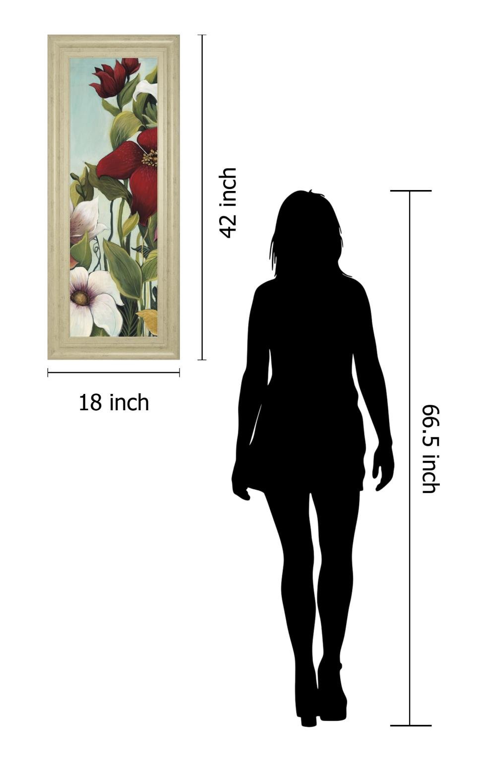 This beautifully designed piece is elegantly framed using a 3 inch profile made of a scratch resistant MDF in a color we call "Ivory Bliss". It is framed under real glass and it is ready to hang with