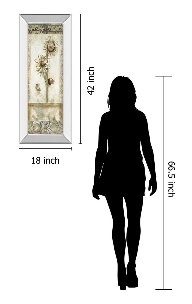 This beautifully designed piece is elegantly framed in a mirrored frame that illuminates the subject. It is framed under real glass and it is ready to hang with all the hardware pre-attached.
