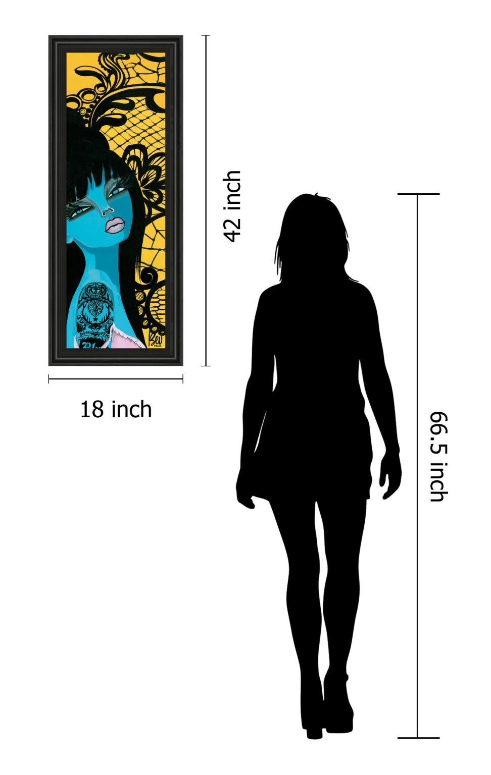 This beautifully designed piece is elegantly framed using a 3 inch profile made of a scratch resistant MDF in a color we call "Midnight Aura". It is framed under real glass and it is ready to hang wi