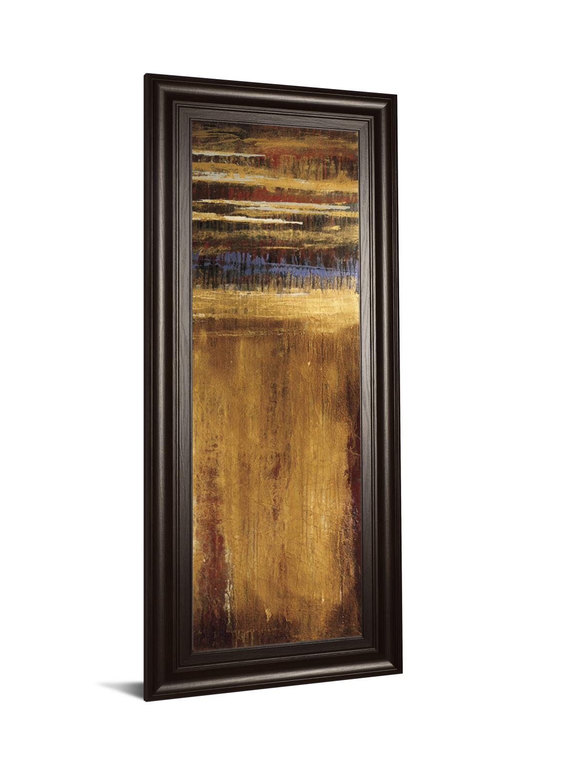 This beautifully designed piece is elegantly framed using a 3 inch profile made of a scratch resistant MDF in a color we call "Midnight Aura". It is framed under real glass and it is ready to hang wi