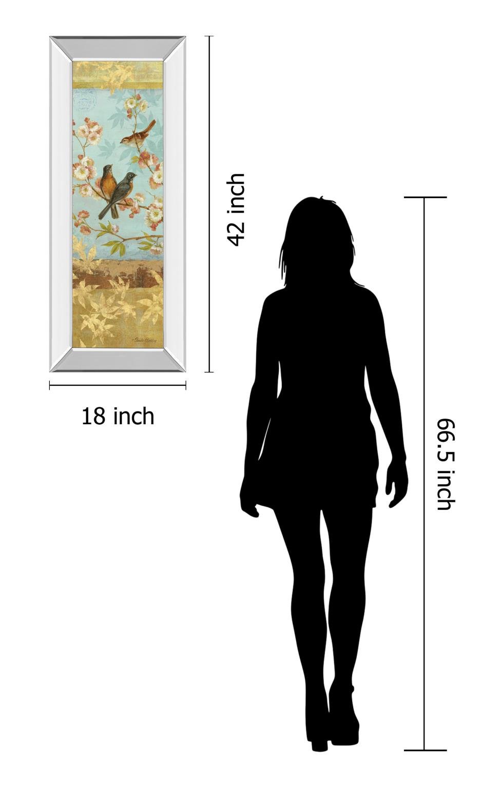 18 in. x 42 in. “Robins & Blooms Panel” By Pamela Gladding Mirror Framed Print Wall Art