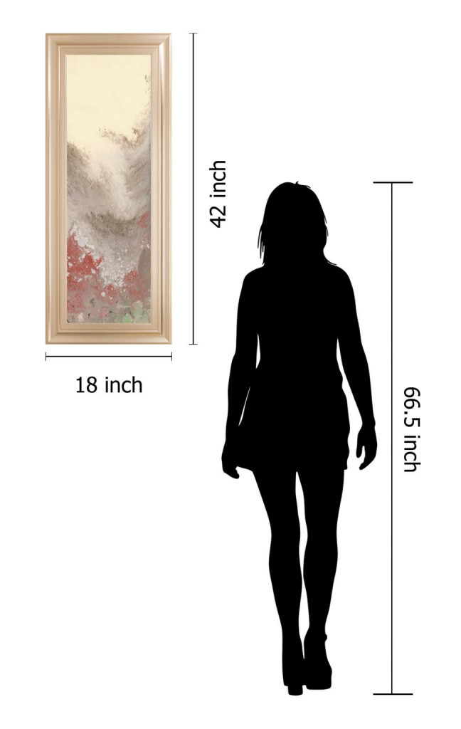 This beautifully designed piece is elegantly framed using a 3 inch profile made of a scratch resistant MDF in a color we call "Rose Gold Romance". It is framed under real glass and it is ready to han