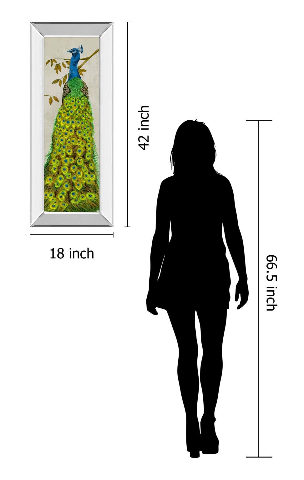18 in. x 42 in. “Vintage Peacock Il” By Melissa Wang Mirror Framed Print Wall Art
