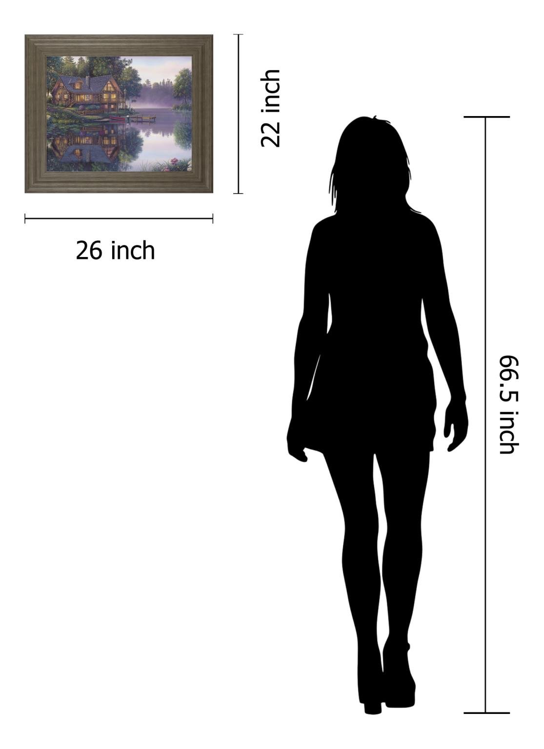 This beautifully designed piece is elegantly framed using a 3 inch profile made of a scratch resistant MDF coated in a color we call "Tranquil Ash". It is framed under real glass and it is ready to h