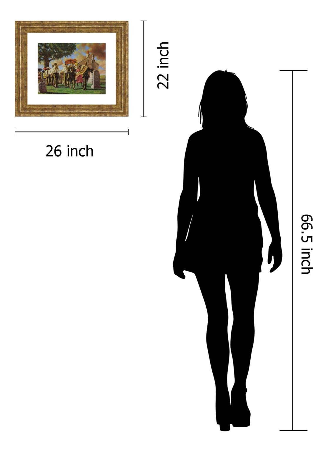 This beautifully designed piece is 18 in. x 42 in. in size and elegantly framed using a 3 inch profile made of a scratch resistant MDF Framed In a color we know as Gilded Radiance. It is framed under