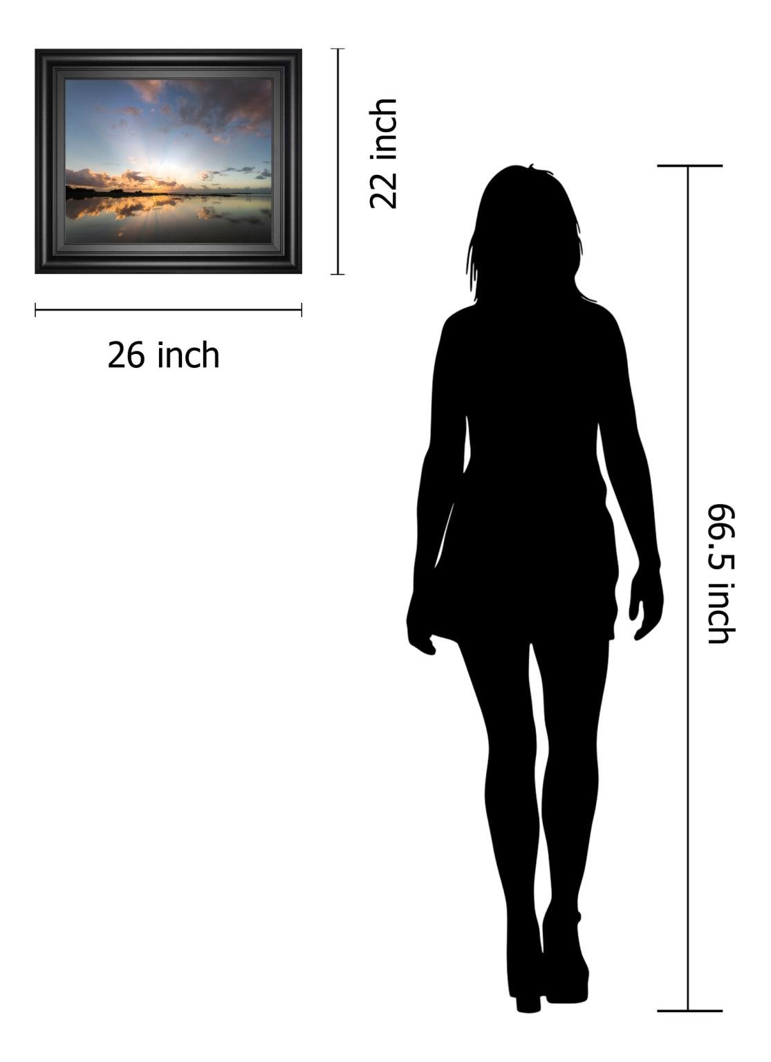 This beautifully designed piece is elegantly framed using a 3 inch profile made of a scratch resistant MDF in a color we call "Midnight Aura". It is framed under real glass and it is ready to hang wi