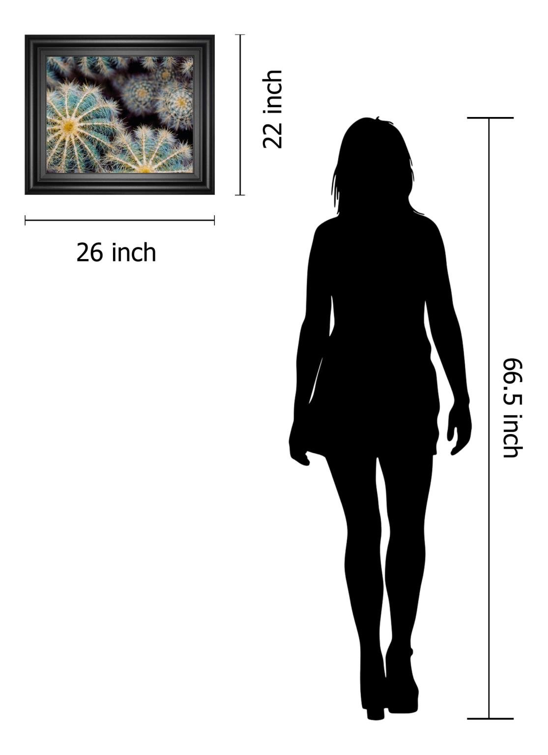 This beautifully designed piece is elegantly framed using a 3 inch profile made of a scratch resistant MDF in a color we call "Midnight Aura". It is framed under real glass and it is ready to hang wi