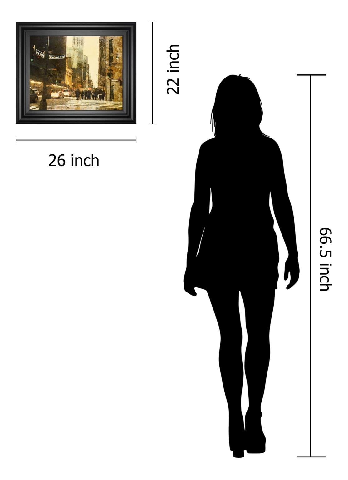 This beautifully designed piece is elegantly framed using a 3 inch profile made of a scratch resistant MDF in a color we call "Midnight Aura". It is framed under real glass and it is ready to hang wi