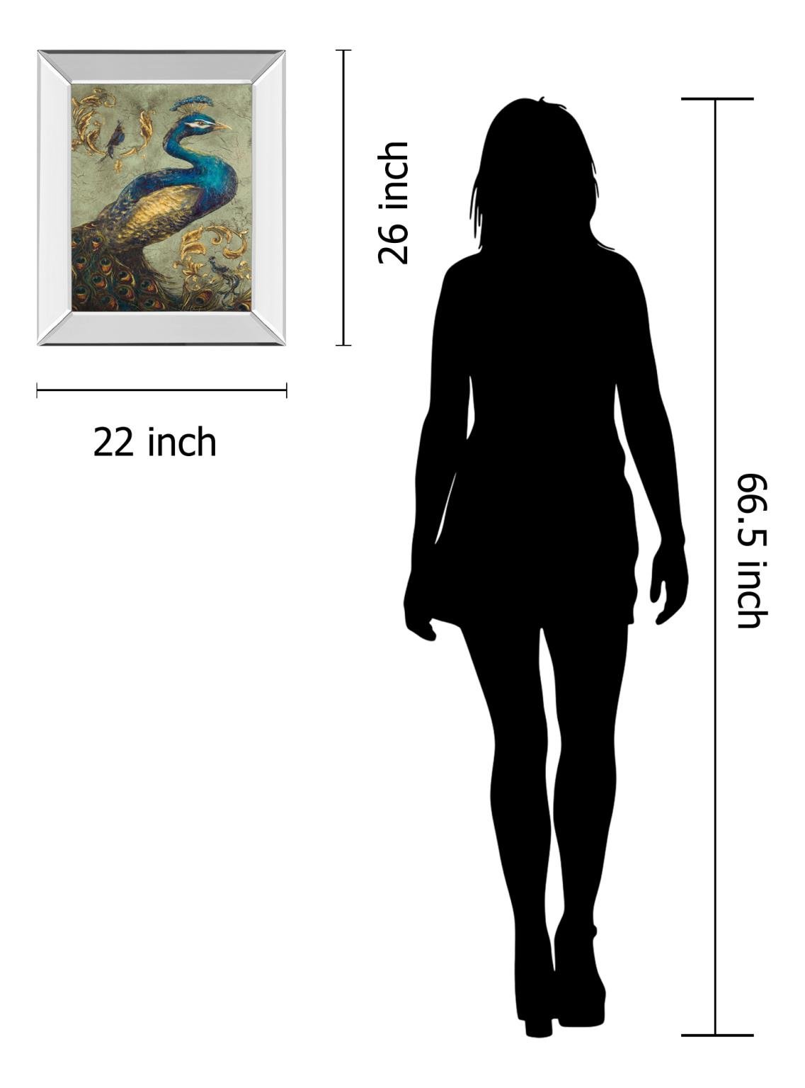 22 in. x 26 in. “Peacock On Sage I” By Tiffany Hakimipour Mirror Framed Print Wall Art