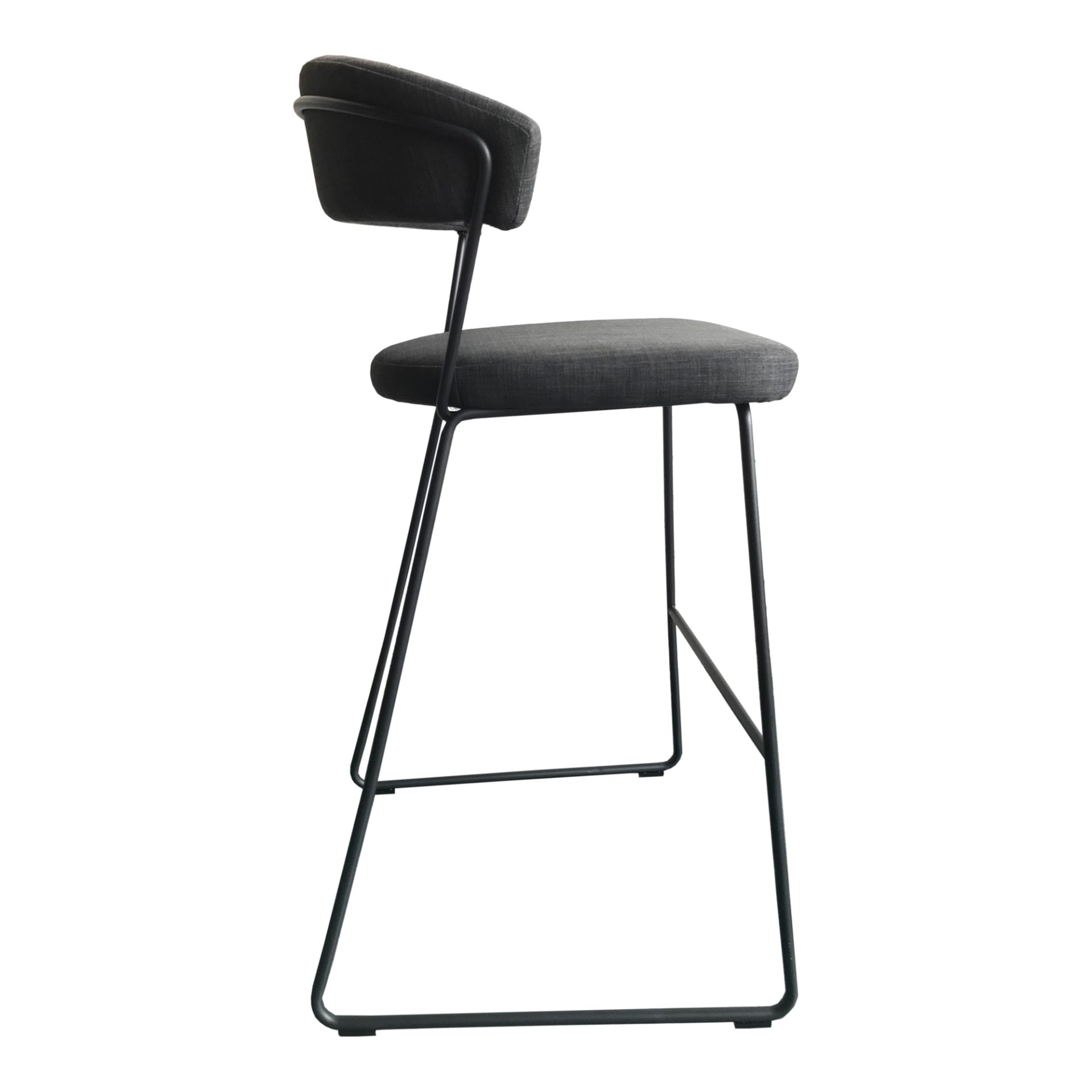 Take a step back into time with the retro Adria dark grey barstool. Thin iron frame legs create an eye-catching silhouette, and an upholstered high-density foam seat and low back keep things comfortable and cool. Take a sip of sophistication when you gather around the bar in these beautiful barstools.