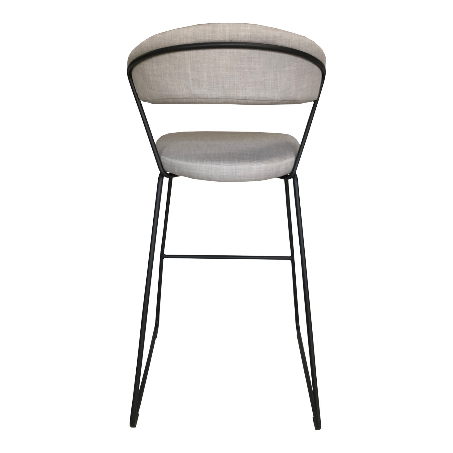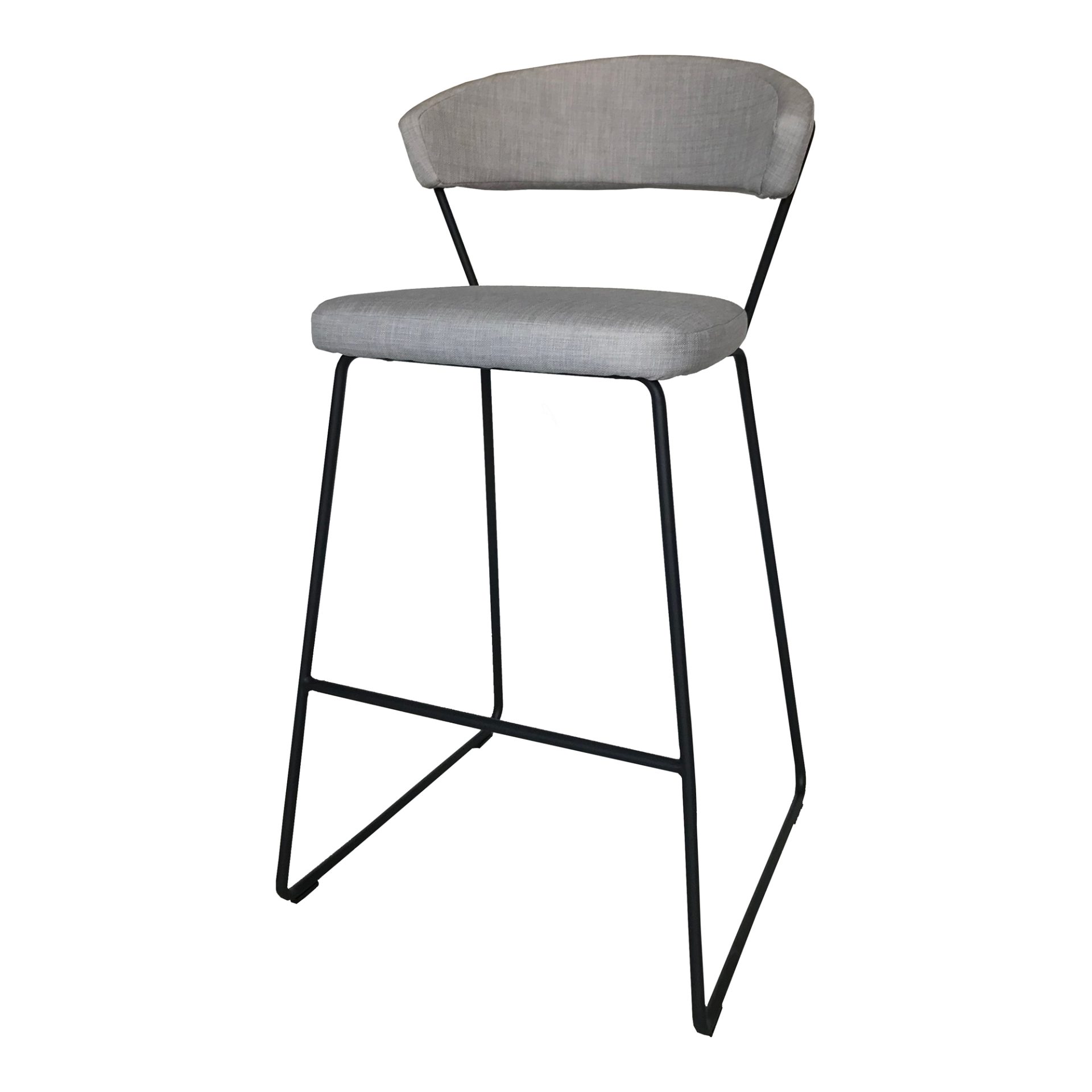 A cool, contemporary silhouette – the Adria grey barstool is one chic seat. Thin iron frame legs create an eye-catching profile, and an upholstered high-density foam seat and low back keep things comfortable and relaxed. Take a sip of sophistication when you gather around the bar in these beautiful barstools.