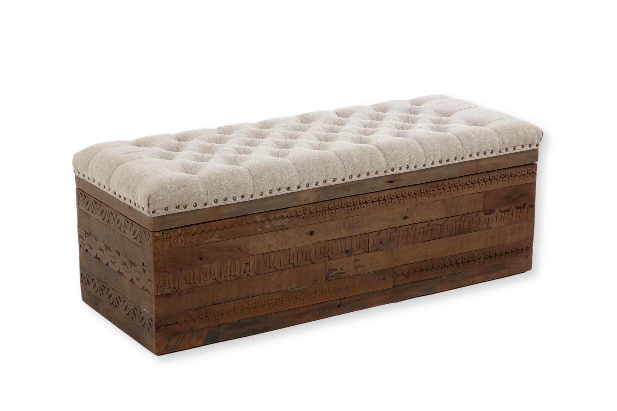 Advika Storage Ottoman / Bench Grey Ankara/Linen