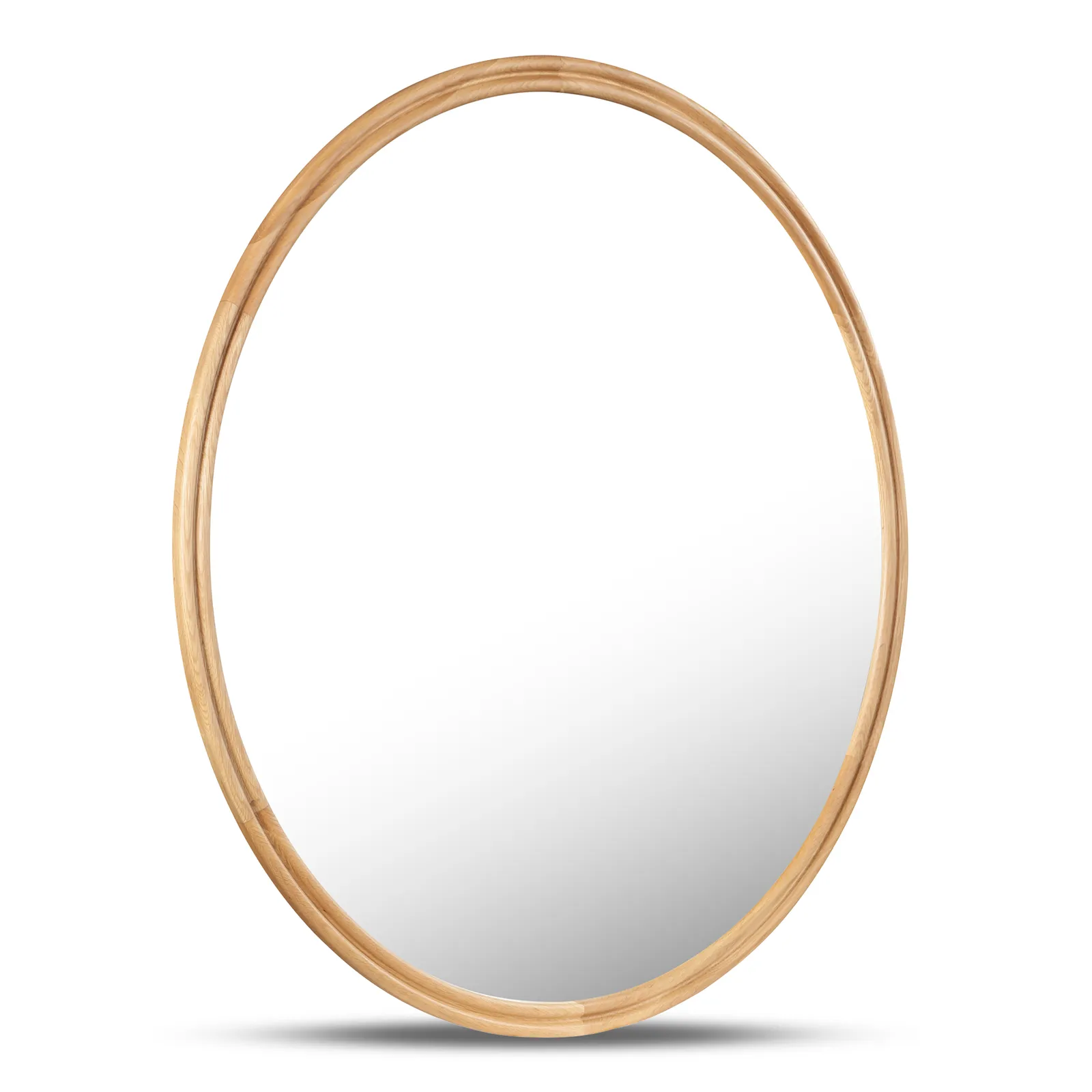The Alcott round mirror celebrates wood’s inherent beauty with a thoughtful double-frame detail. Each mirror showcases the meticulous finish, enhancing the wood’s rich, warm tones and creating a serene focal point in entryways, bedrooms, or living areas.