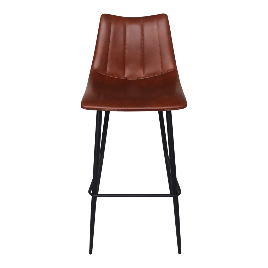 Contemporary modern barstools get a new take with this sleek aesthetic. The Alibi barstool features striking vertical line stitches that add subtle detail to its monochromatic design. A Soft faux leather seat is shaped to fit for comfort so guests can relax at the island or bar counter.
