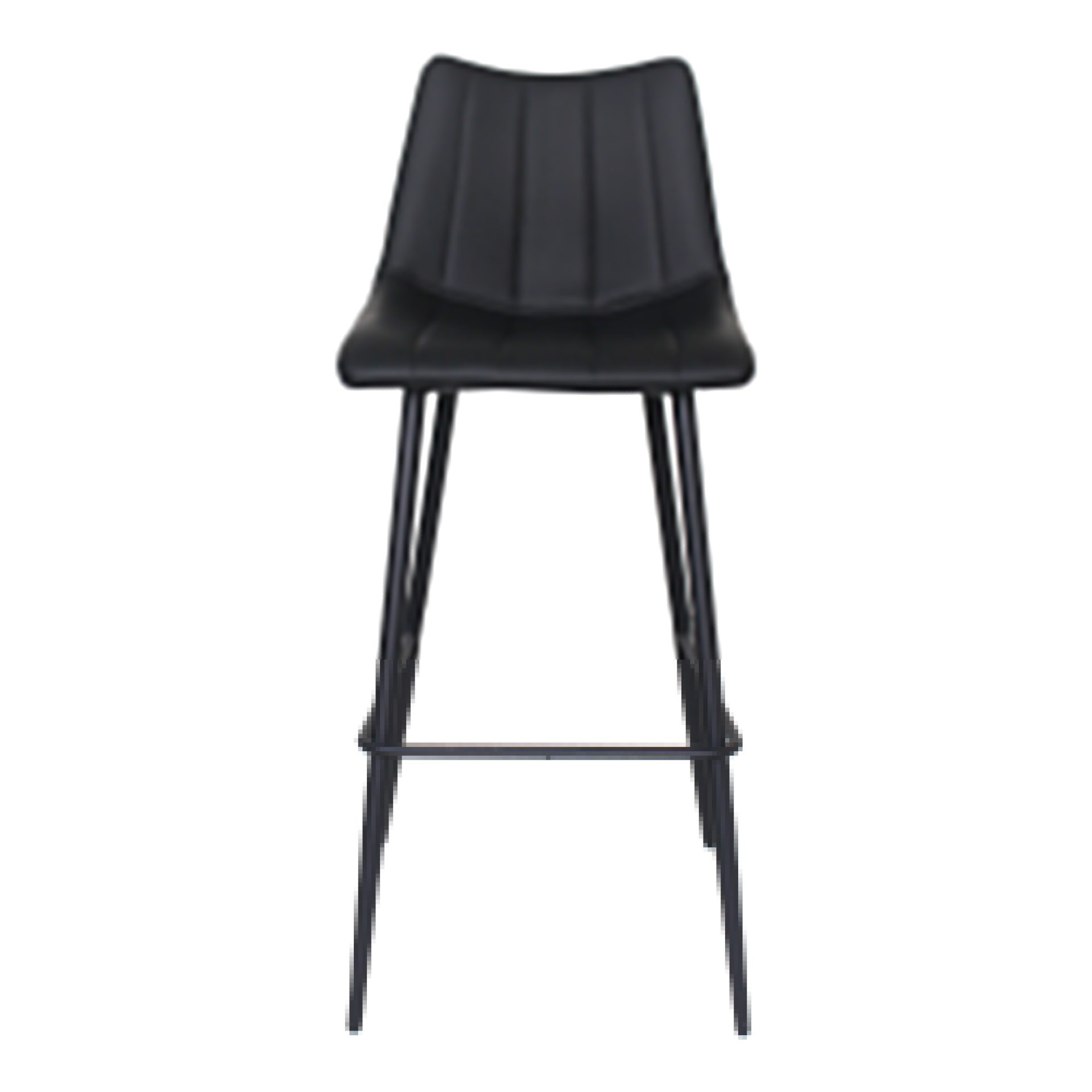 Contemporary modern barstools get a new take with this sleek aesthetic. The Alibi barstool features striking vertical line stitches that add subtle detail to its monochromatic design. A Soft faux leather seat is shaped to fit for comfort so guests can relax at the island or bar counter.