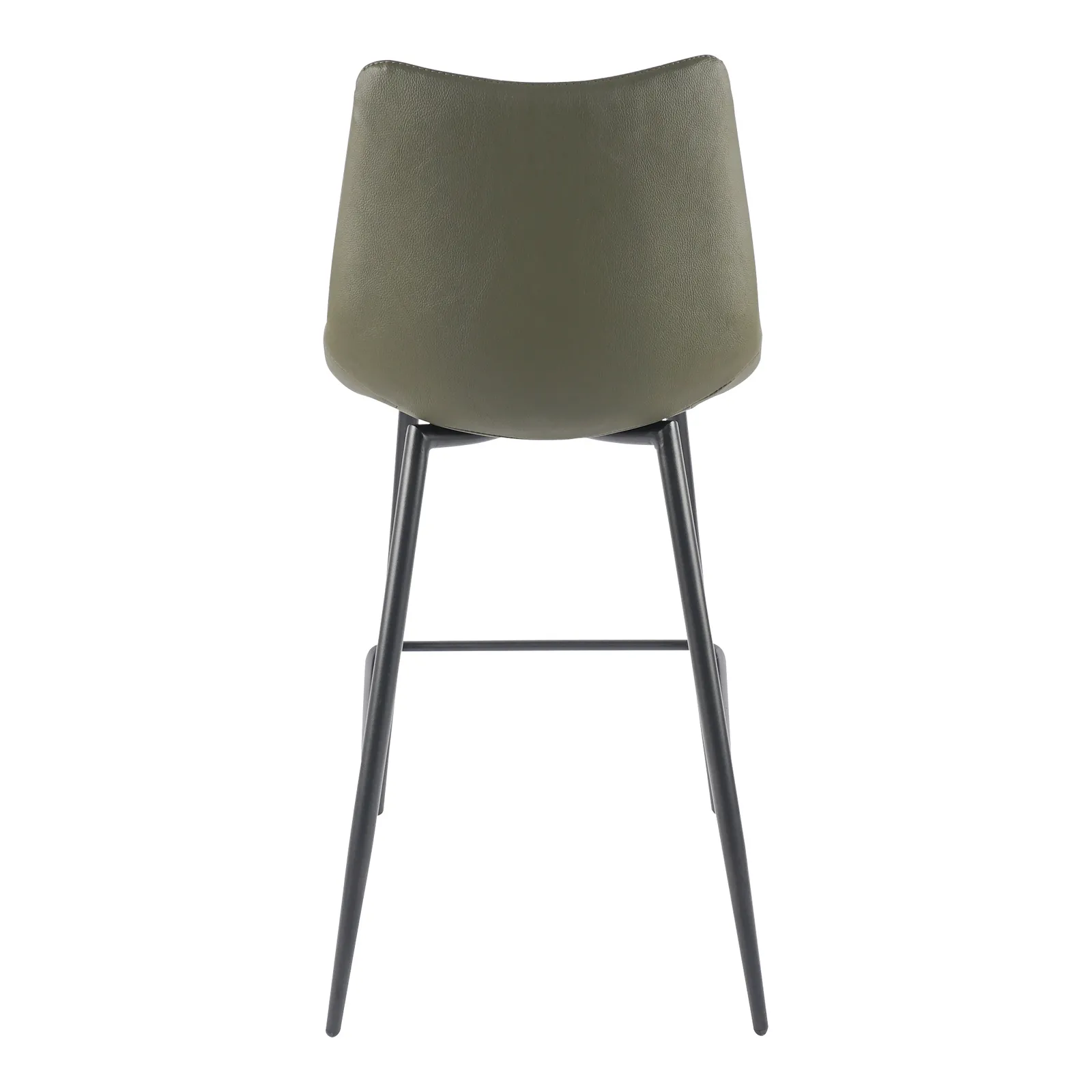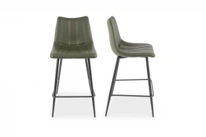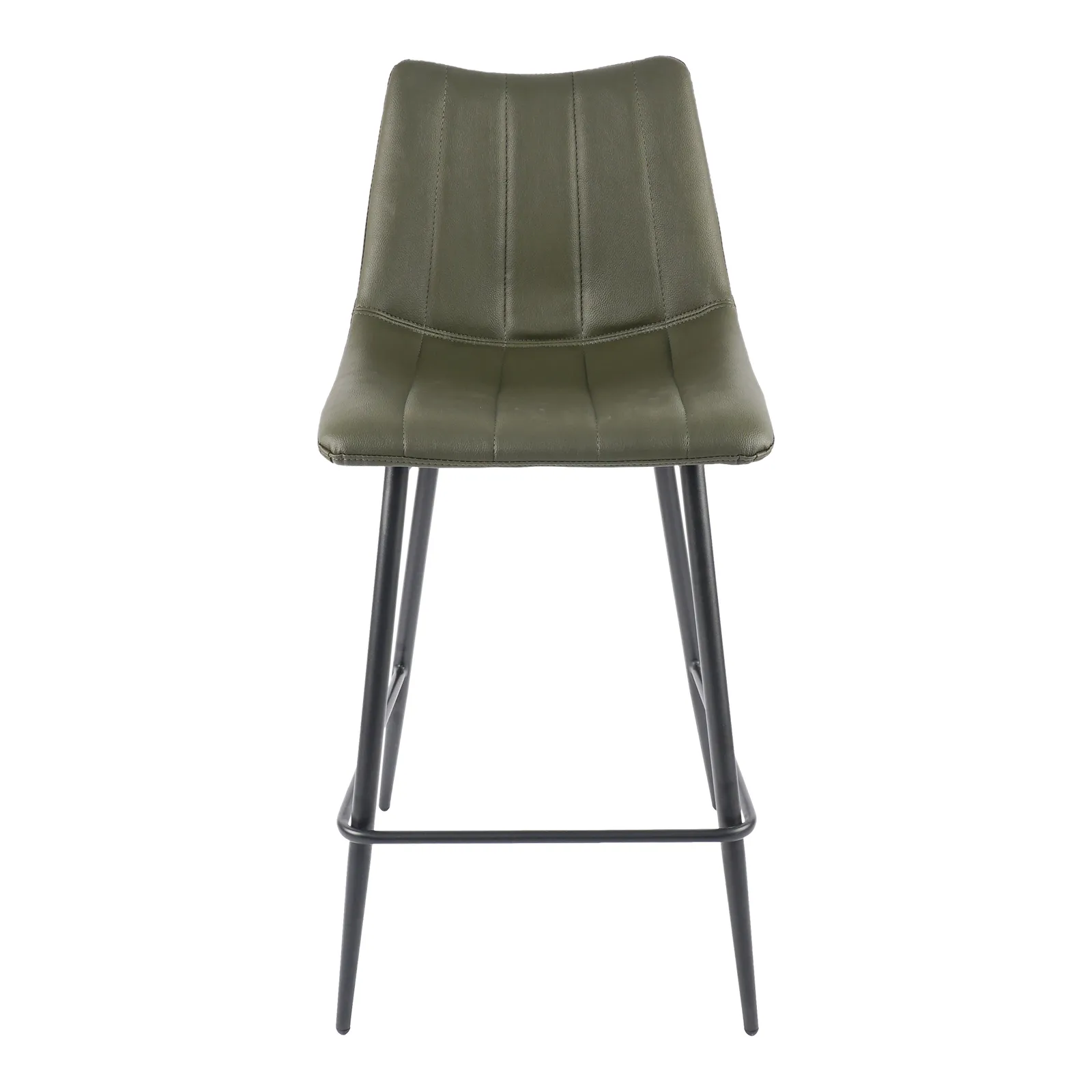 Contemporary modern counter stools get a new take with this sleek aesthetic. Available in several colors, the Alibi counter stool features striking vertical line stitches that add subtle detail to its monochromatic design. A soft vegan leather seat is shaped to fit for comfort so guests can relax at the island or bar counter.