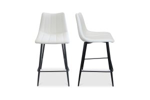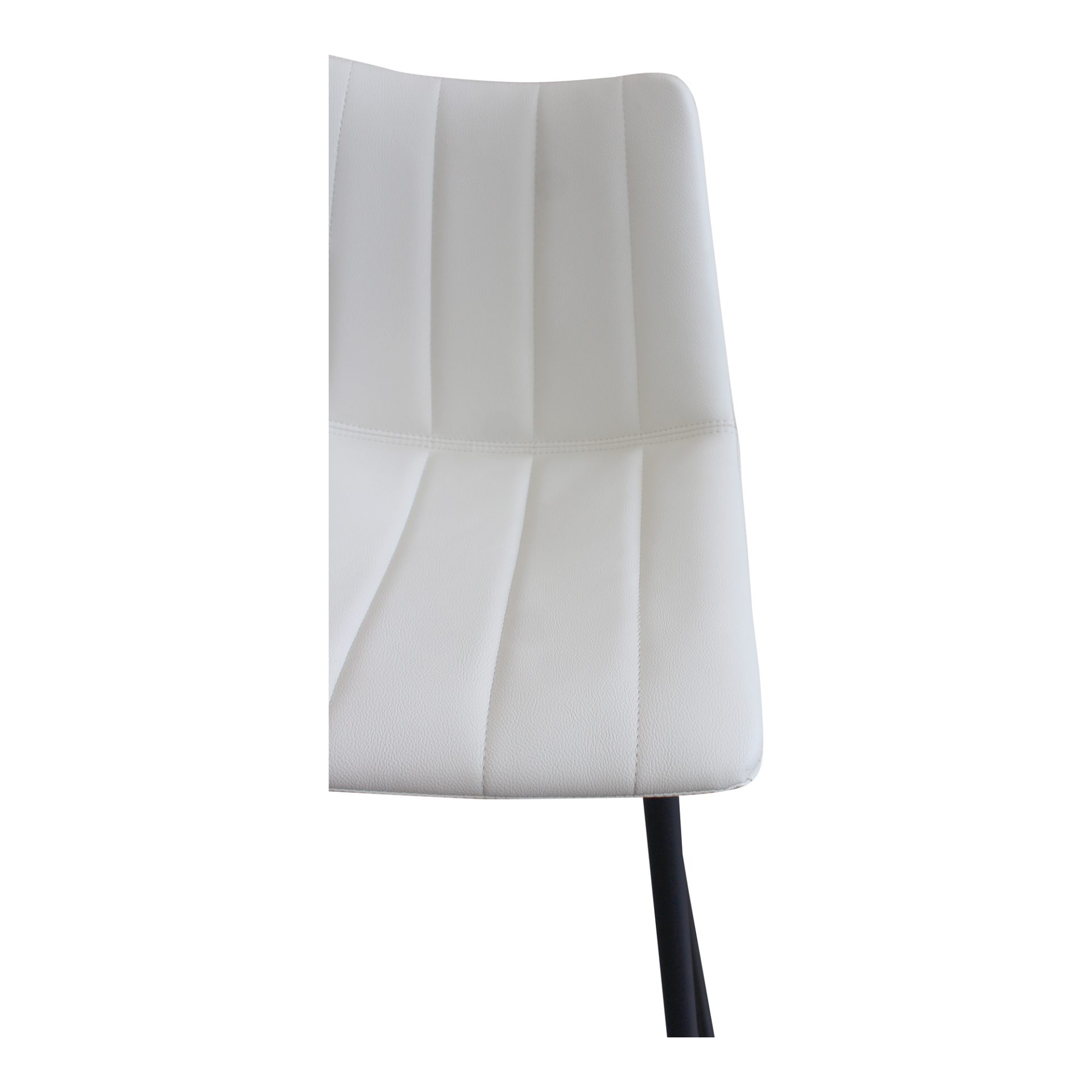 Contemporary modern counter stools get a new take with this sleek aesthetic. Available in several colors, the Alibi counter stool features striking vertical line stitches that add subtle detail to its monochromatic design. A soft vegan leather seat is shaped to fit for comfort so guests can relax at the island or bar counter.