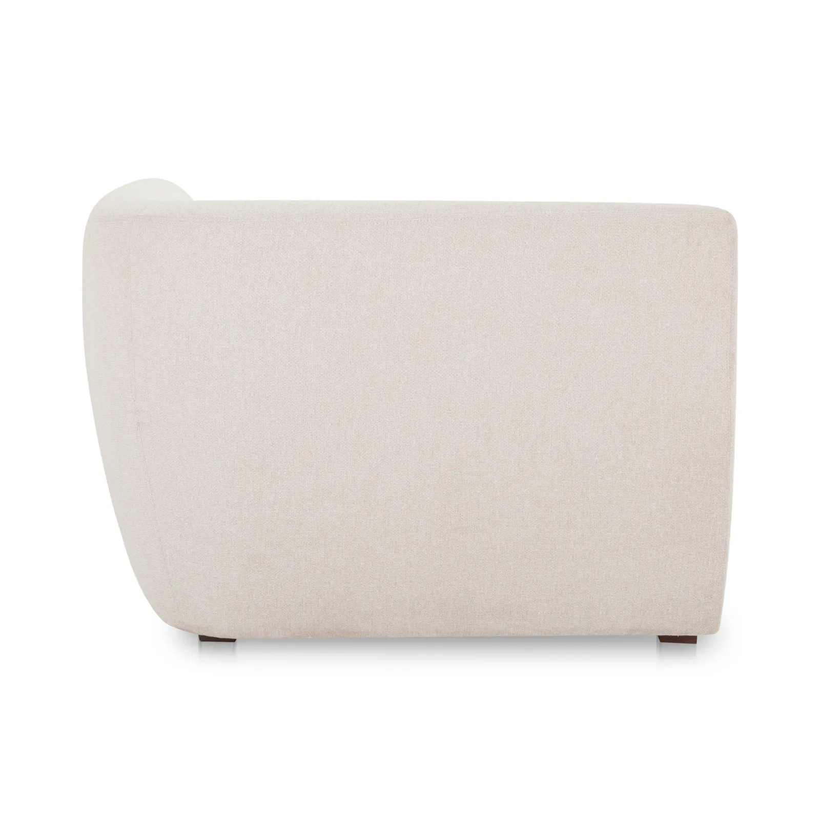 Offering a generous seat wrapped in rich, warm-toned upholstery, the Amelia corner chair allows numerous configurations to fit any interior design or spatial requirements. Its high back and sloped arm curvature combine to offer a supportive seat, inviting guests to lounge and relax. For added comfort, a lumbar cushion is perfect for posture as this piece radiates a welcoming ambiance.