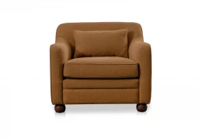 The Amira accent chair’s graceful silhouette promises cloud-like comfort, inviting you to sink in and unwind. Upholstered in durable C0 performance fabric, and accentuated with a piping details it marries beauty with practicality. The high back curves to embrace, while gentle flared arms and plush lumbar cushion offer enhanced comfort.