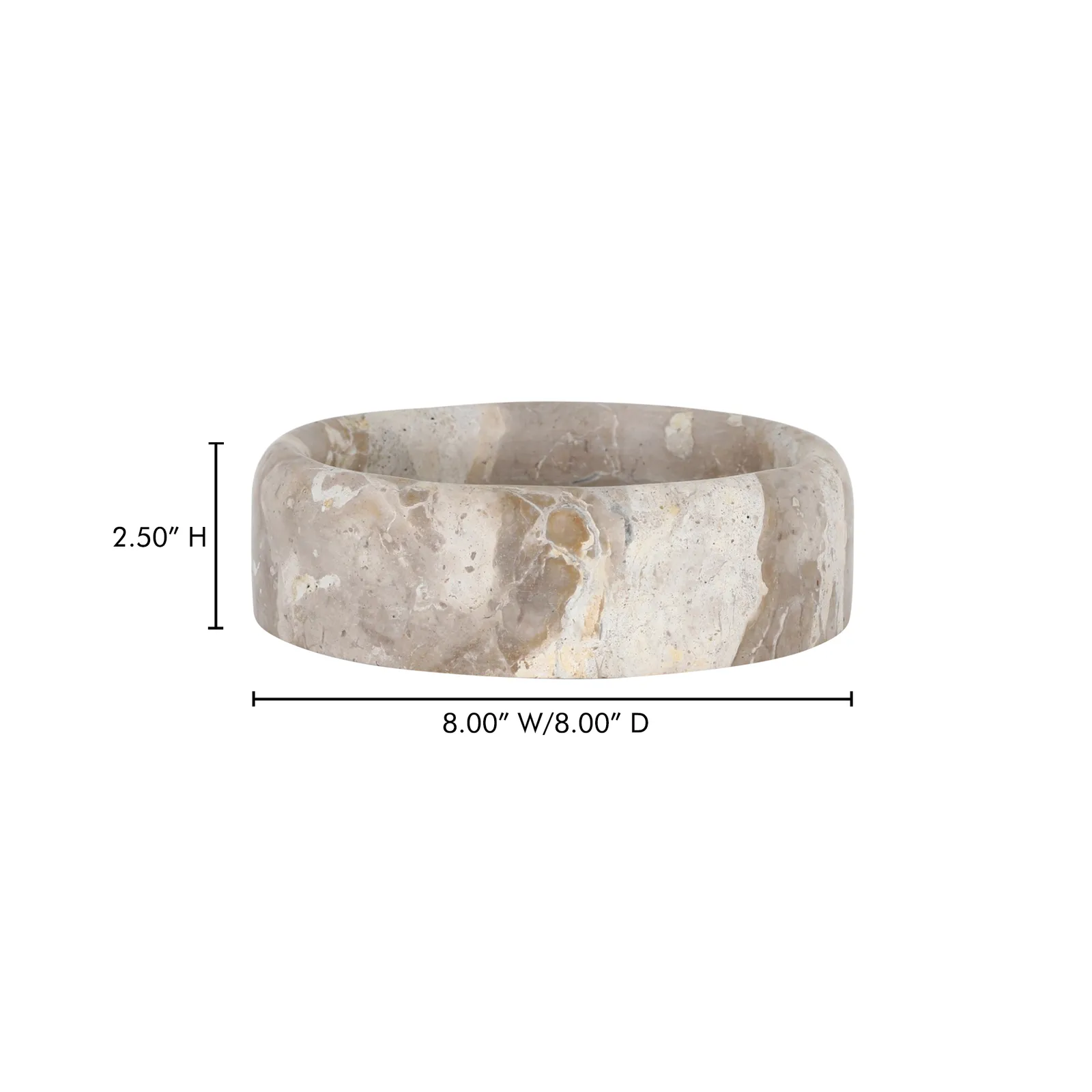 With a generous 8-inch scale and two separate pieces of marble for the top and bottom, the Anais catchall adds a vintage-inspired, elevated feel to any space. Crafted from solid panther beige marble with expressive veining, each piece is uniquely elegant as it captures grandeur in practical design.