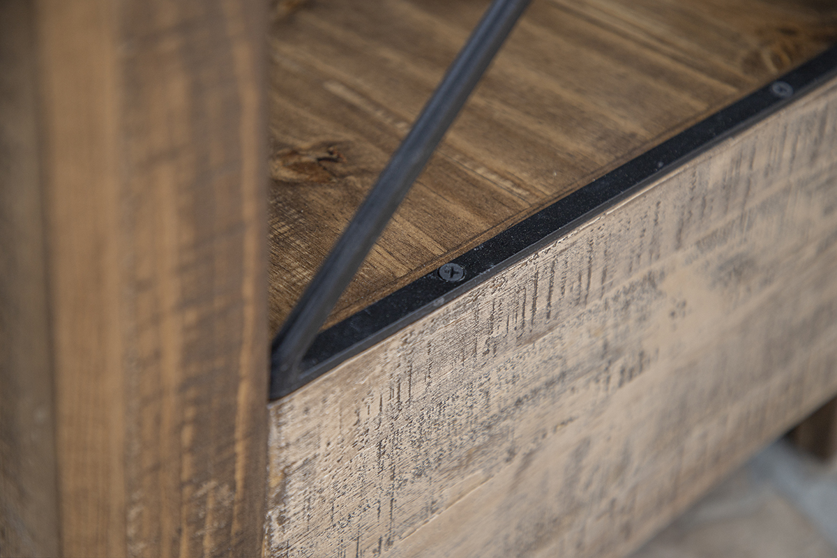 • Introducing Andaluz, crafted from solid pine wood, this collection brings a unique addition to your space. With its three-shade finish complemented by wrought iron “X” sides, Andaluz effortlessly infuses a modern rustic touch into any setting.