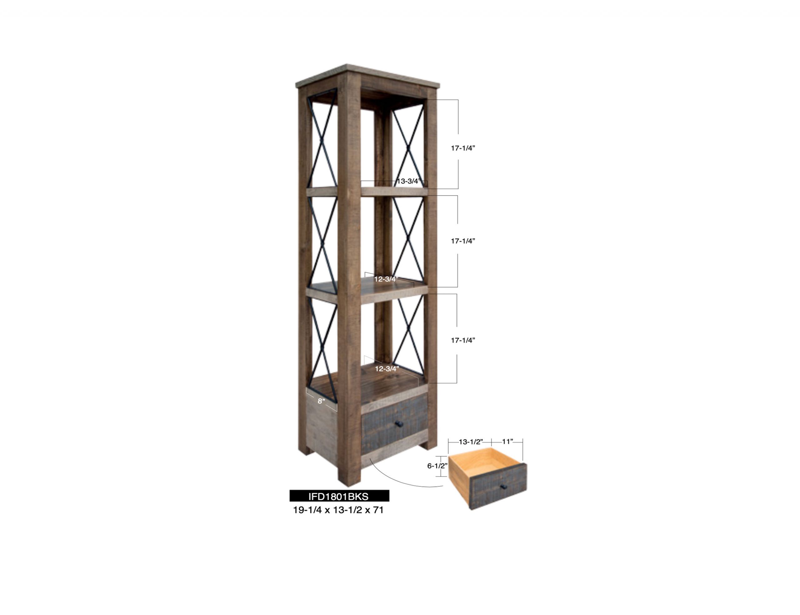 Andaluz 3 Shelves 1 Drawer Bookcase