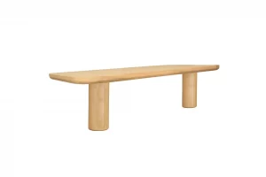 The Anders dining bench’s minimalist silhouette, featuring a half-bullnose edge and sleek column legs, offers visual lightness that enhances various interior styles. Crafted from FSC-certified oak, each bench tells a unique story through distinct grain patterns and knots. Comfortably seating three, this versatile piece seamlessly adapts to any setting with its timeless elegance and sustainable design.