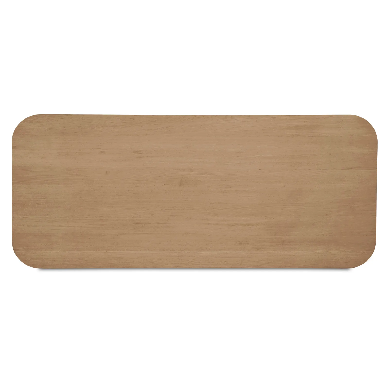 Crafted from FSC-certified oak, the Anders dining table’s expansive surface comfortably seats eight, while a half-bullnose edge softens the minimalist silhouette. Four sleek column legs provide a stable foundation, echoing the table’s commitment to simplicity. The natural finish celebrates oak’s inherent beauty, with unique grain patterns ensuring each piece tells its own story.
