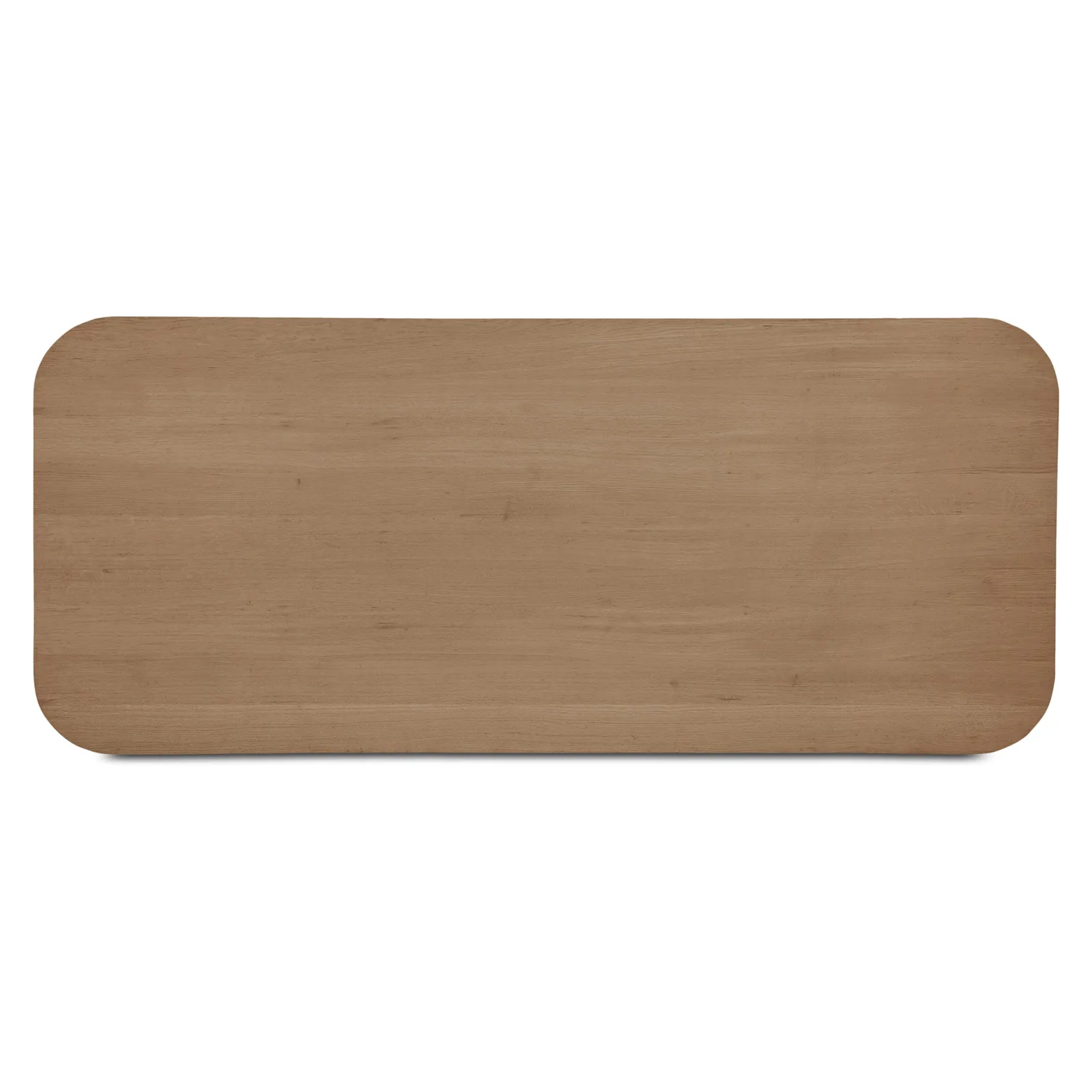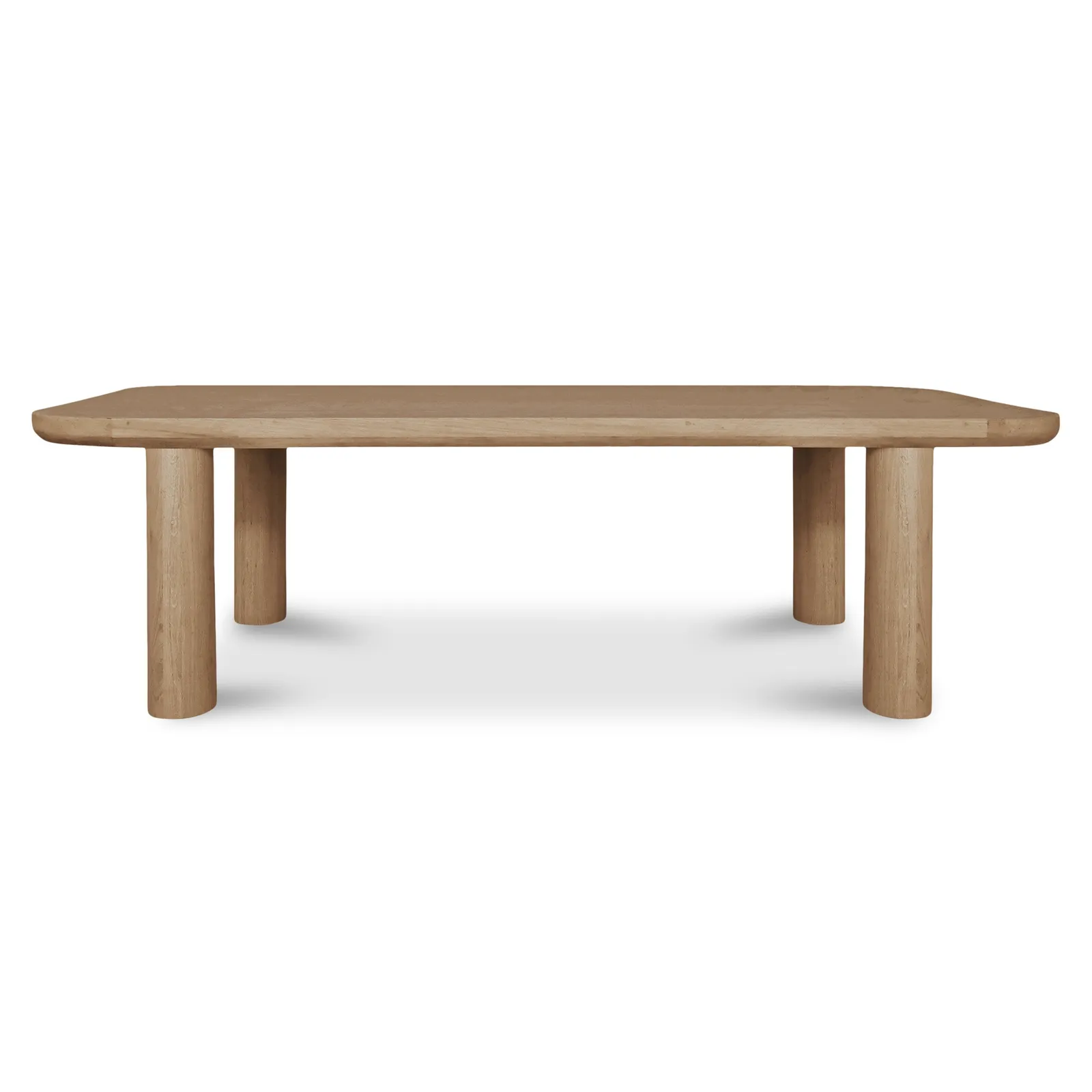 Crafted from FSC-certified oak, the Anders dining table’s expansive surface comfortably seats six, while a half-bullnose edge softens the minimalist silhouette. Four sleek column legs provide a stable foundation, echoing the table’s commitment to simplicity. The natural finish celebrates oak’s inherent beauty, with unique grain patterns ensuring each piece tells its own story.