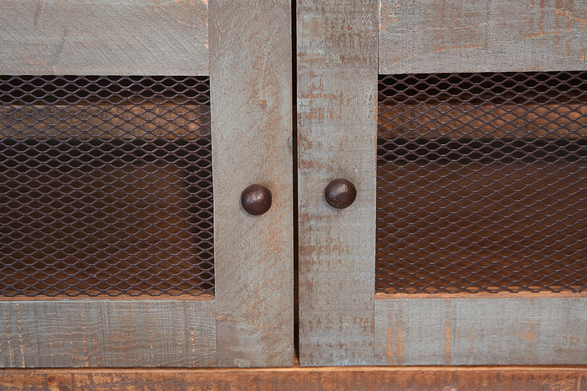 Antique Multicolor 3 Drawer, 2 Iron Mesh Doors 62″ TV Stand