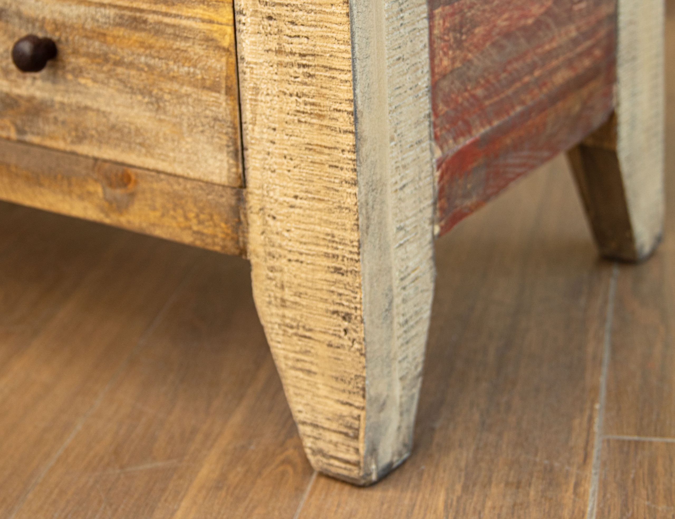 • The Antique collection is meticulously crafted from solid pine wood, featuring a captivating hand-distressed look in a multicolor finish. This collection serves as the perfect rustic addition to your home.