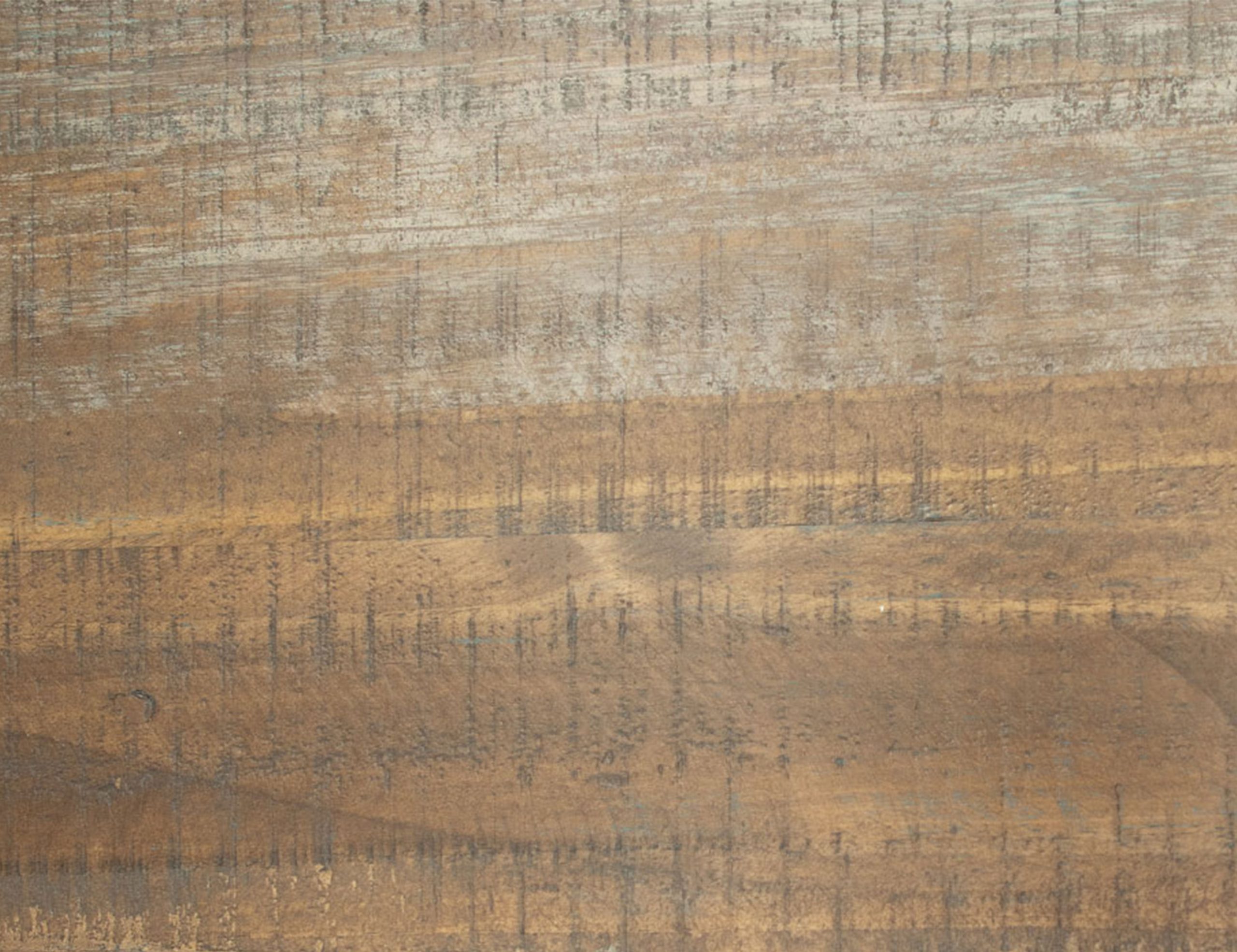 • A multi-step, soft, multi-colored finish on hand-distressed wood.