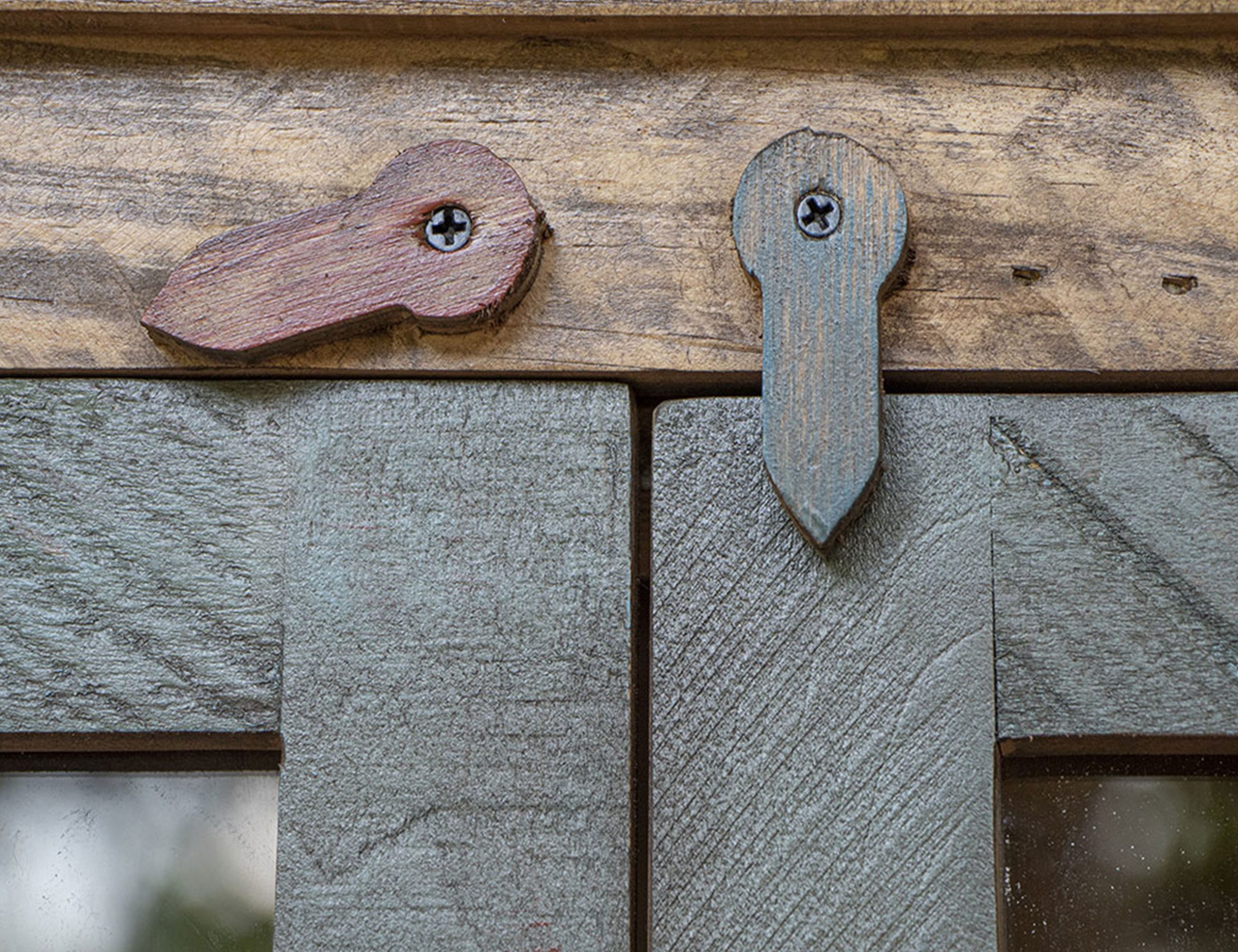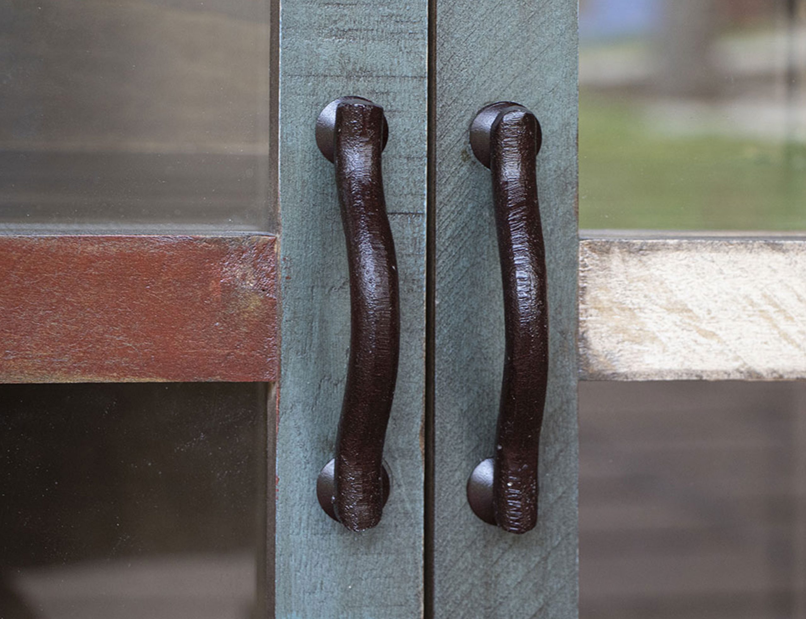 • Base and tops trims feature solid, hand-forged iron with nail-head detailing for an authentic rustic look.
