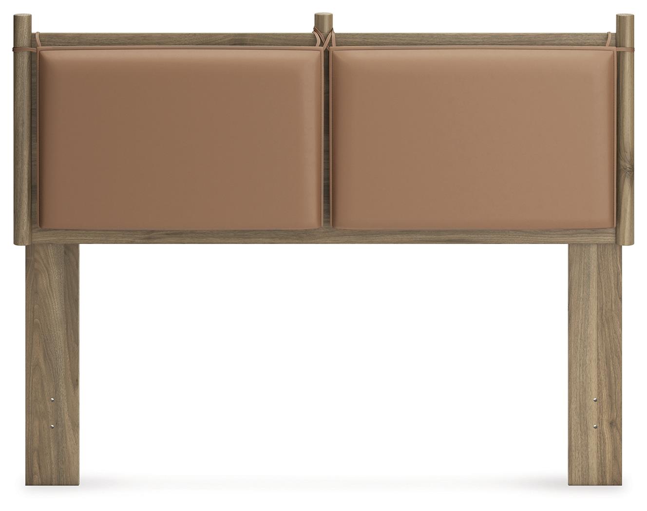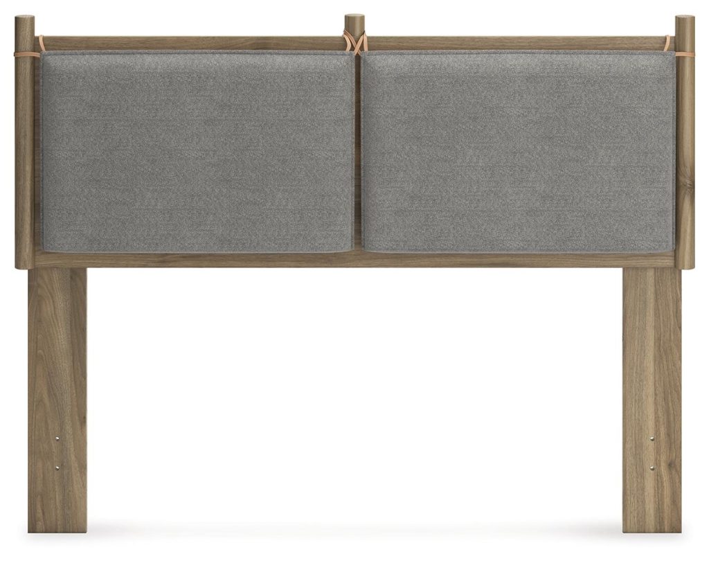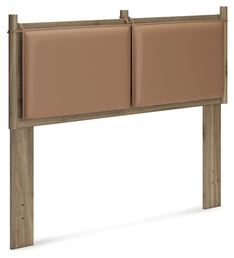 Dare to take minimalism to the max. This full panel headboard has a richly relaxed feel thanks to its honey brown finish over replicated wood grain. The optional reversible cushions are an inventive element,,,, allowing you to choose faux leather or gray fabric to suit your space. There’s no doubt about it: This contemporary piece is sure to become a classic.