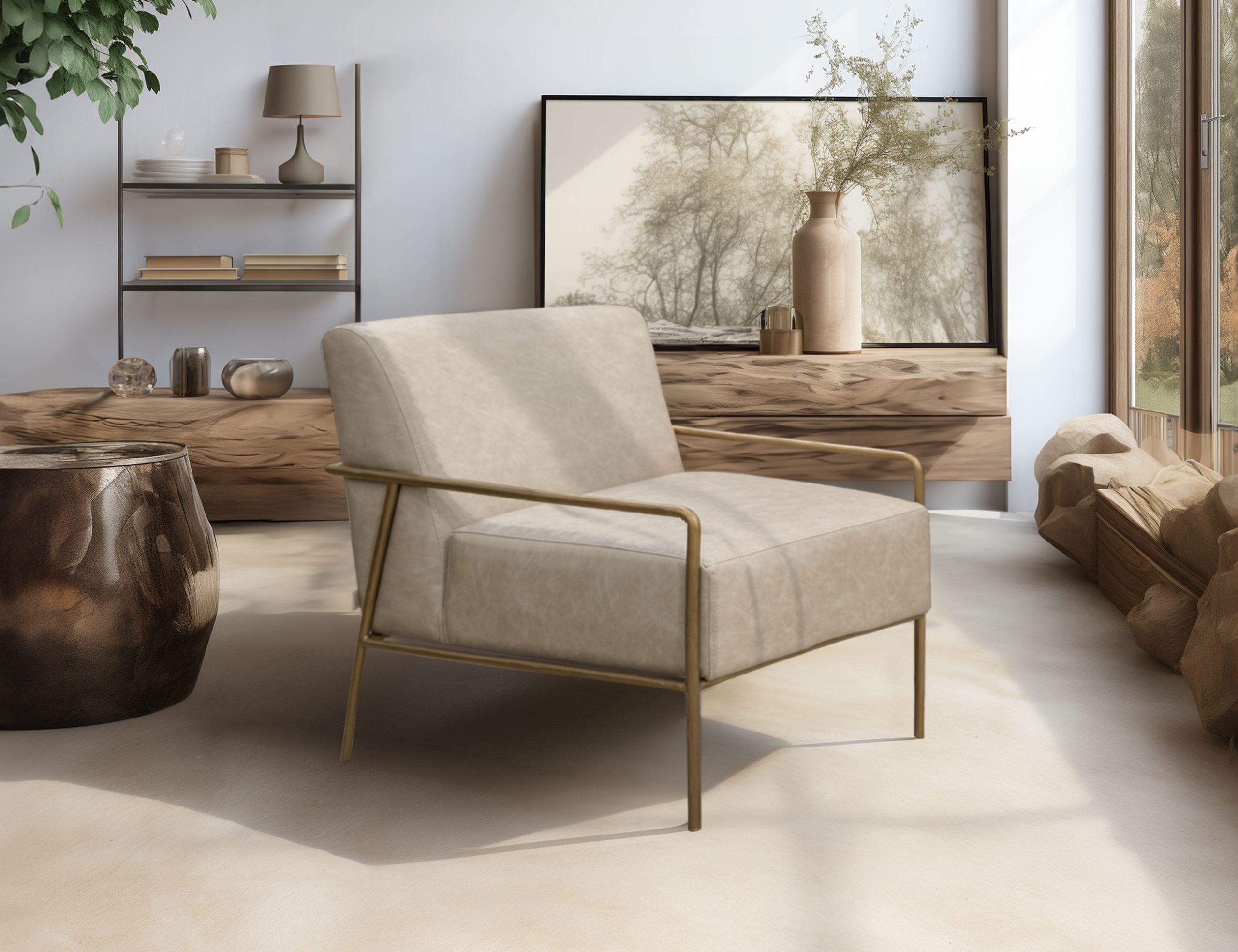Aragon Wooden Frame & Metal Base, Armchair