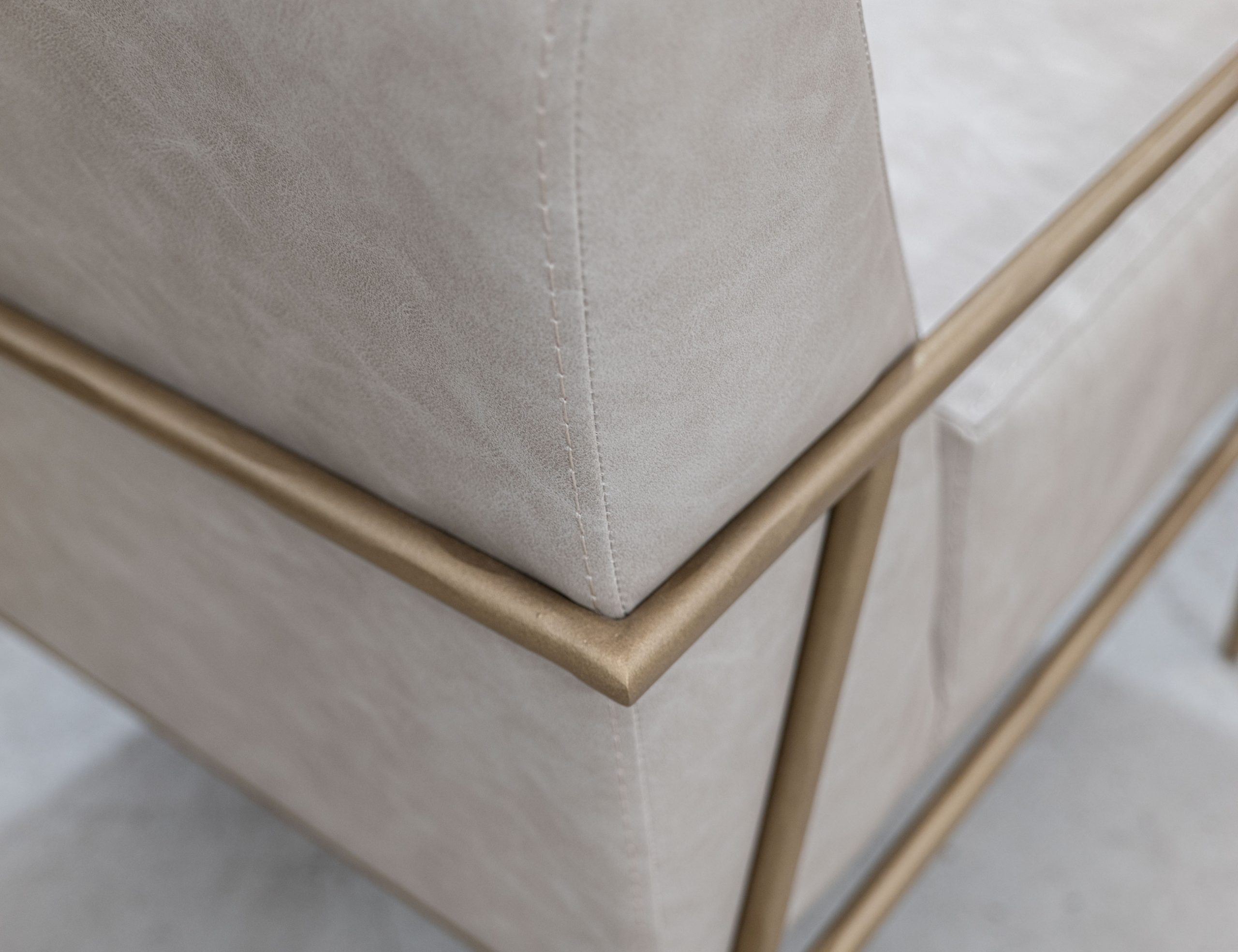 • The Aragon armchair is not just about style but also about comfort. Its gold metal frame and luxurious upholstery make this accent chair the perfect piece to add a modern touch to any room.