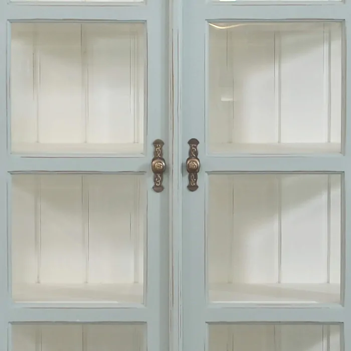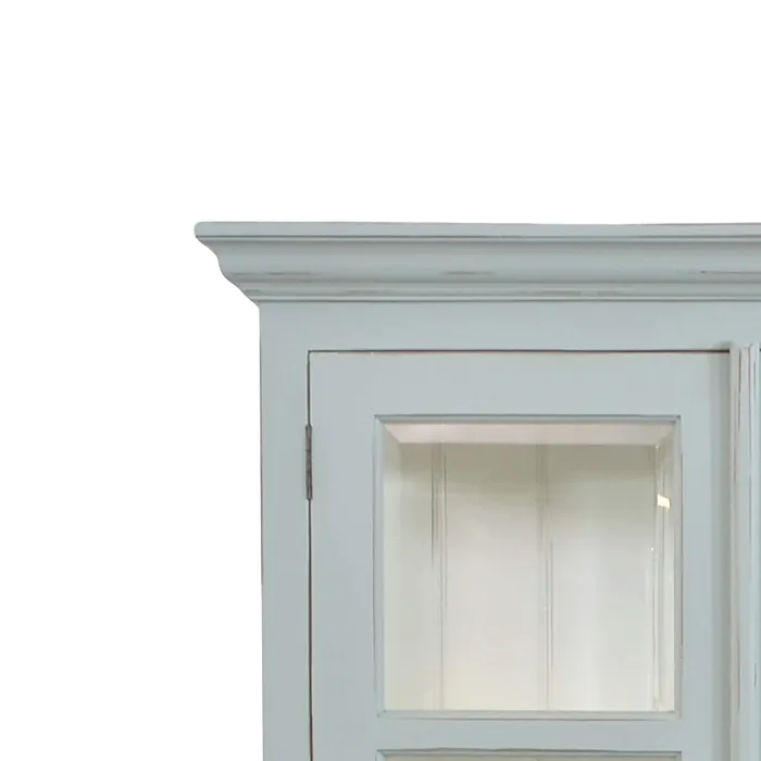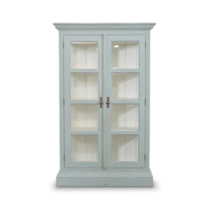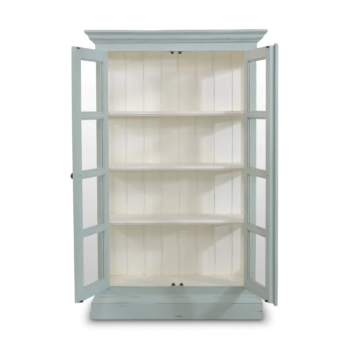 This Ashton Two Door Display Cabinet is spacious enough for everything from assorted trophies to small personal libraries. Made with solid mahogany wood and beveled glass for safe, tasteful showcasing capability, this practical cabinet is built with four shelves. This piece is offered with a vast array of finish and distress options to create a truly custom design.