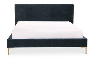 Perfect to breathe new life into your bedroom, Astrid was designed with comfort, luxe, and quality in mind. Fitted with clean lines and a solid pine frame that’s wrapped in a midnight blue velveteen fabric, complete with a padded and upholstered headboard and golden leg accents. This contemporary modern Queen bed is the sort of simple pleasure you need for a seriously stylish sleep.