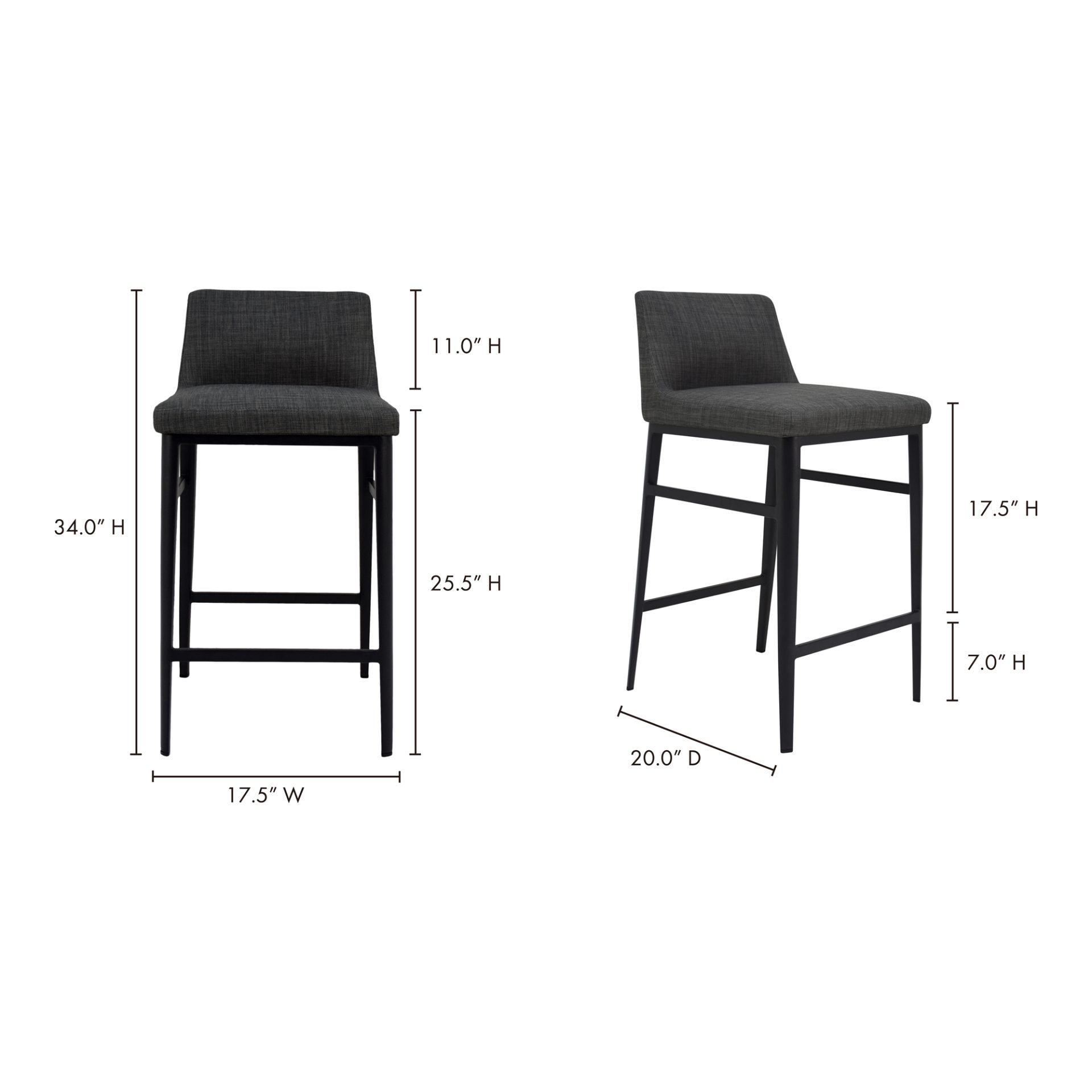 The low-backed profile of the Baron counter stool gives a stylish and compact aesthetic. The charcoal-grey mix upholstery adds texture and sophistication to your dining or kitchen space.