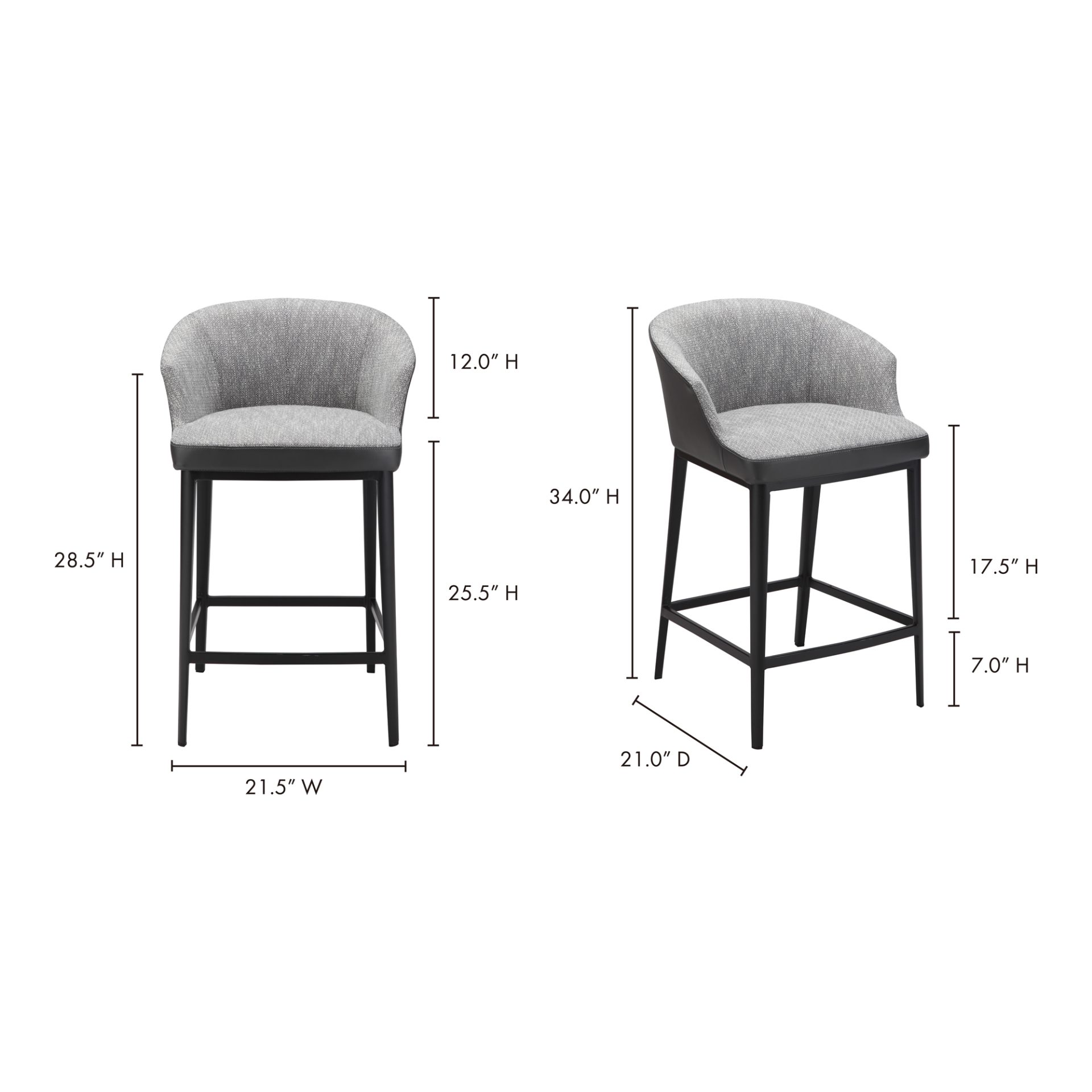 The Beckett counter stool features a durable upholstered seat mix with a sleek, solid steel base giving the chair a slim and ergonomic profile.