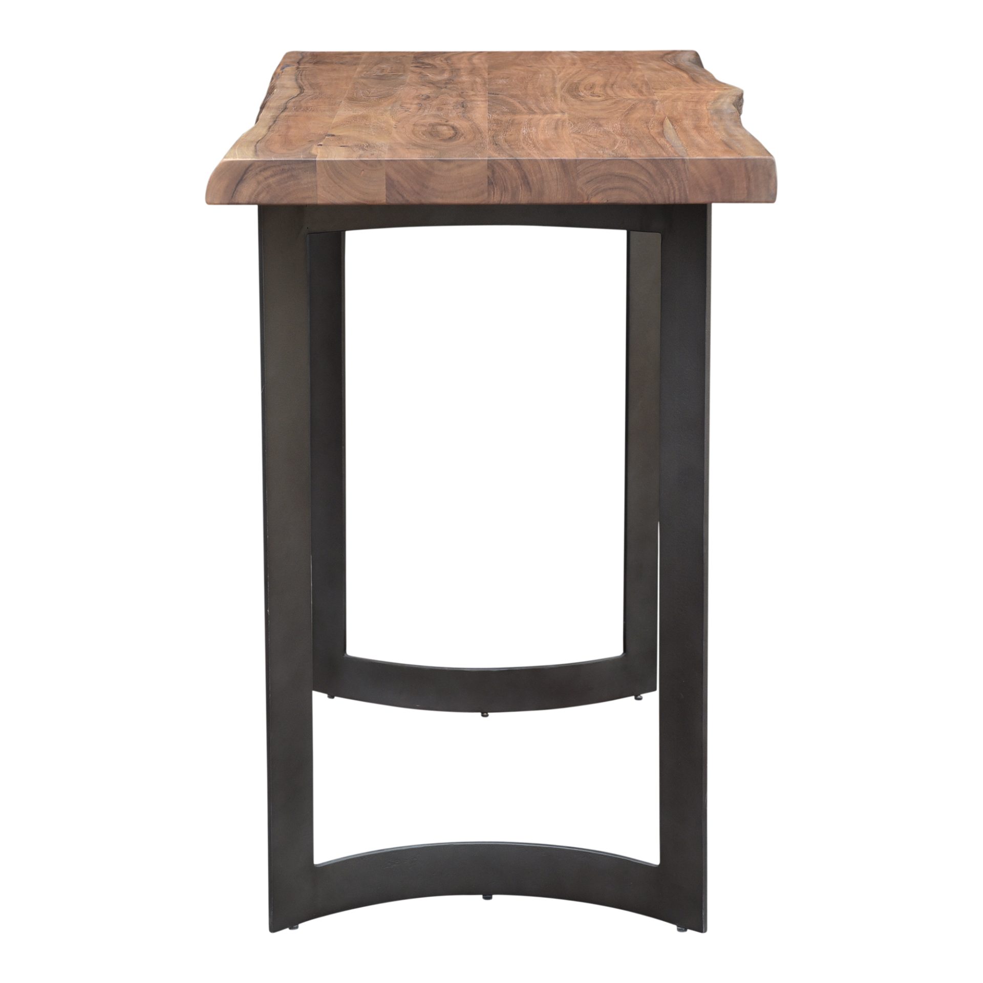 The Bent collection puts nature’s craft front and center. Made of beautiful solid acacia, rustic live edge detailing shows off the unique knots and whorls of the wood. This bar table’s acacia tabletop rests on tall, sturdy iron legs, providing artistic flair for your living space. Pair with other pieces in the Bent collection for a complete look.