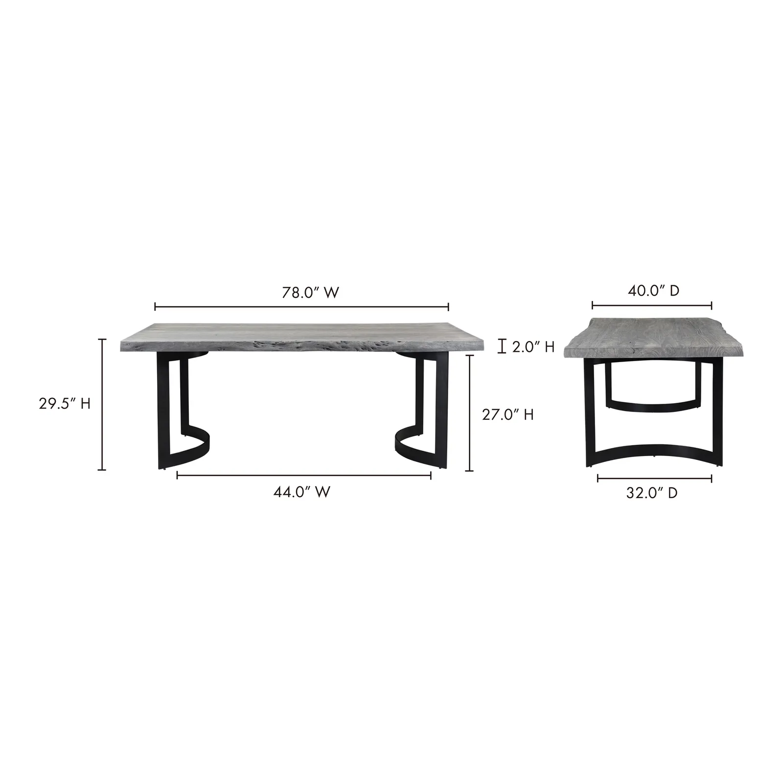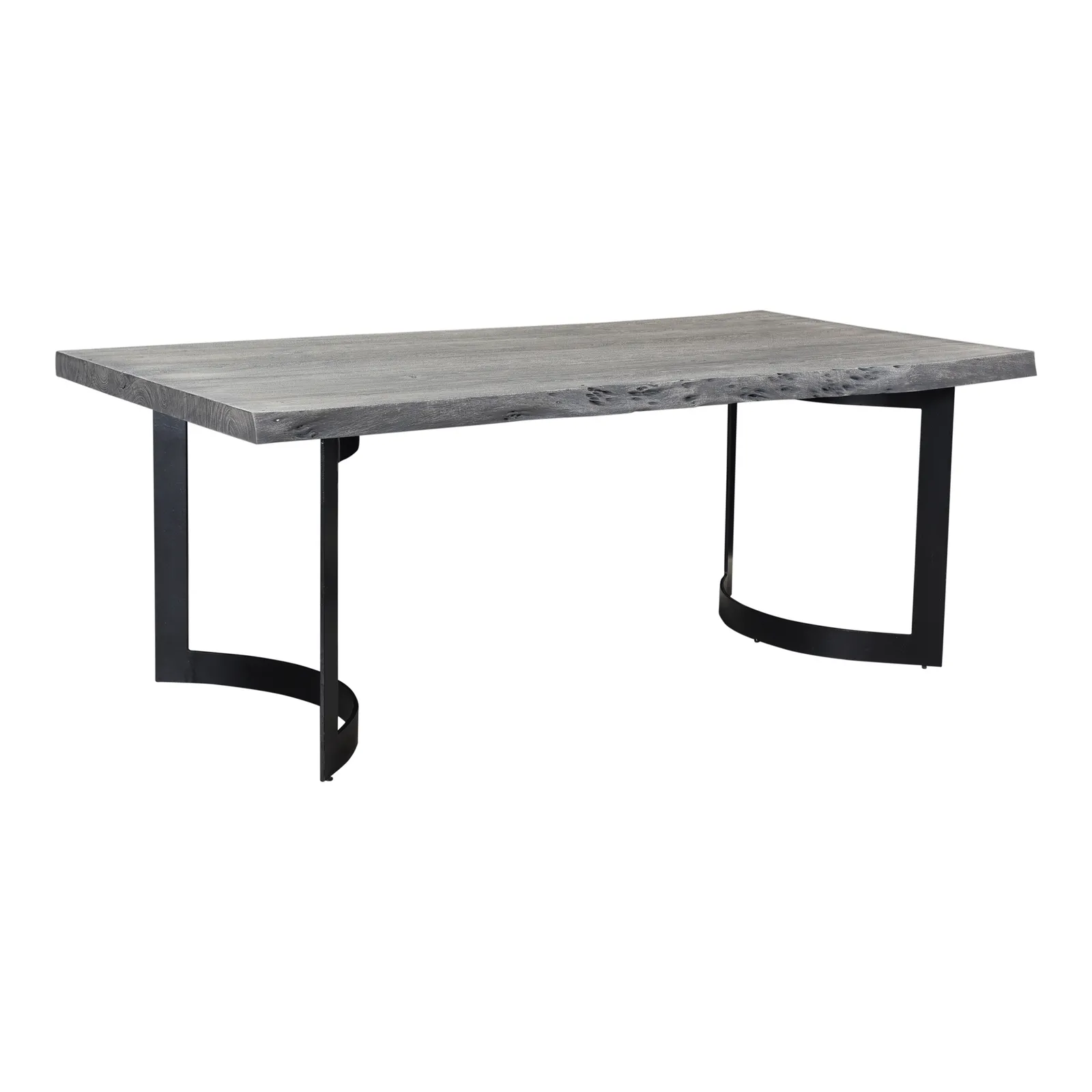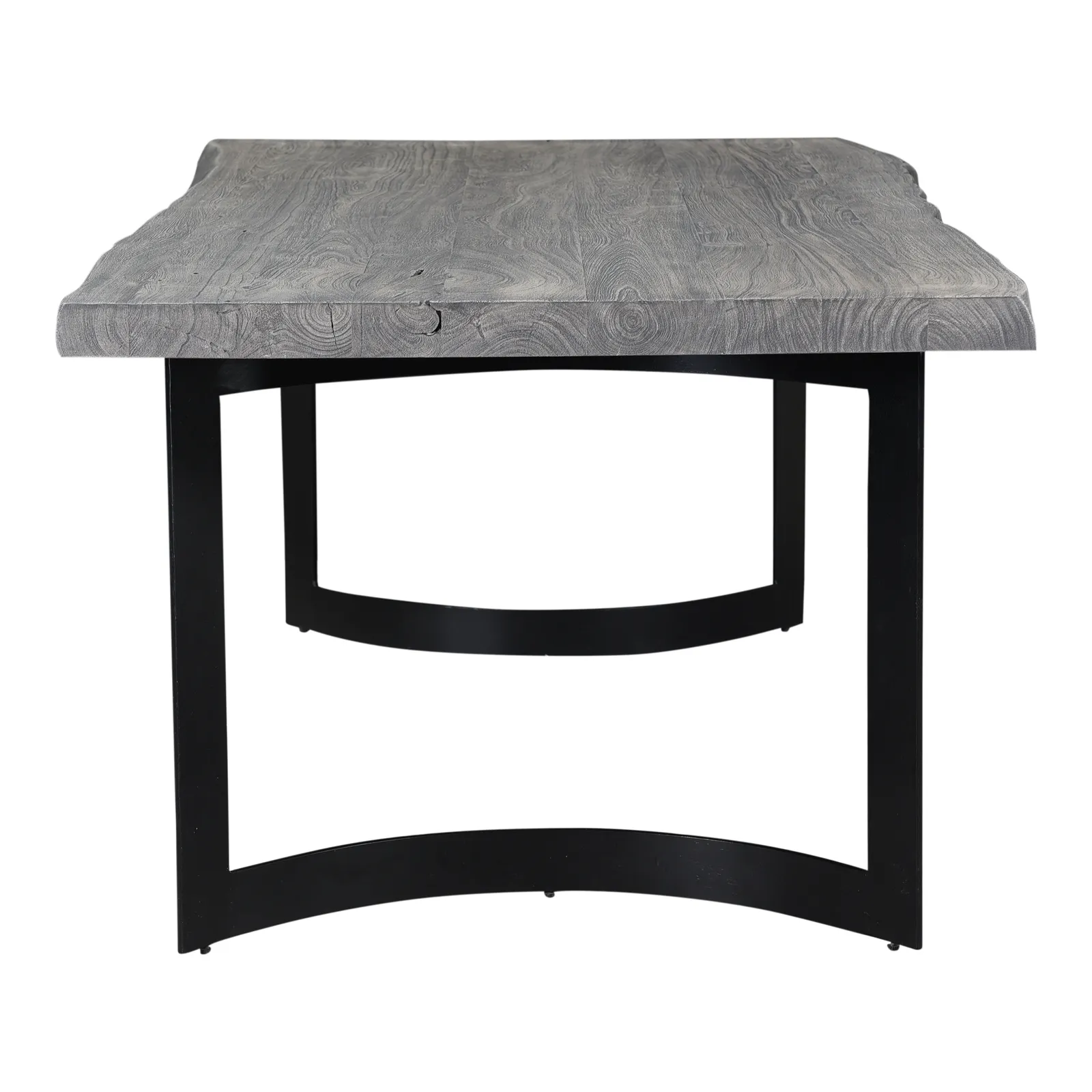 The Bent collection puts nature’s craft front and center. Made of beautiful solid acacia wood, rustic live edge detailing shows off the unique knots and whorls of the wood. This dining table’s expansive surface beautifully showcases the wood’s personality, and is offset by a sturdy industrial metal base. Pair with other pieces in the Bent collection for a complete look.